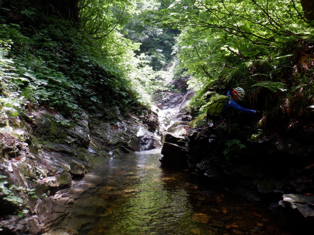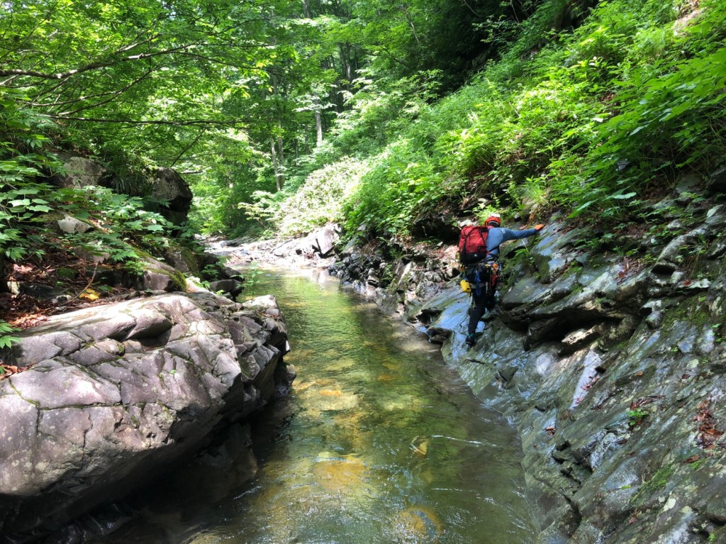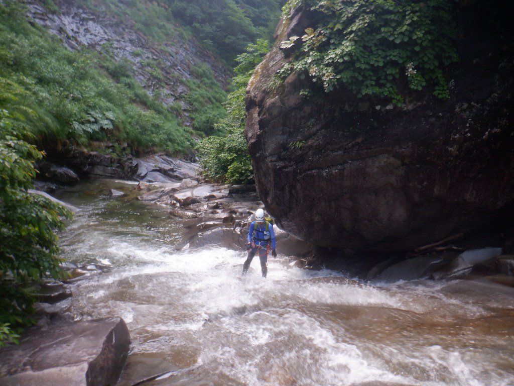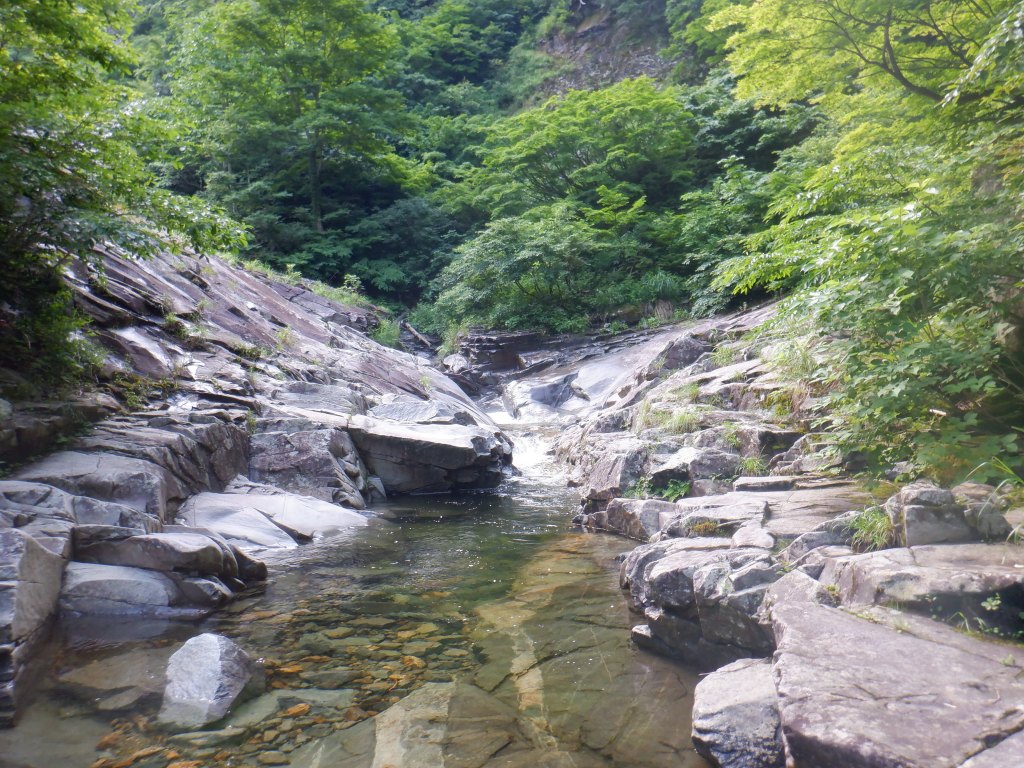 (山宮)土曜日は湯檜曽川東黒沢~宝川ウツボキ沢~白毛門というルート設定をしてましたが、松本さんが入渓時点で『足が冷たい、寒い。』とテンション下がってしまったので東黒沢を奥ノ二俣まで遡行して引き返すことにしました。(実際は1:1の奥ノ二俣ではなくてその手前の2:1の二俣で引き返してました。)特に難しいところもなく癒し系の沢でした。