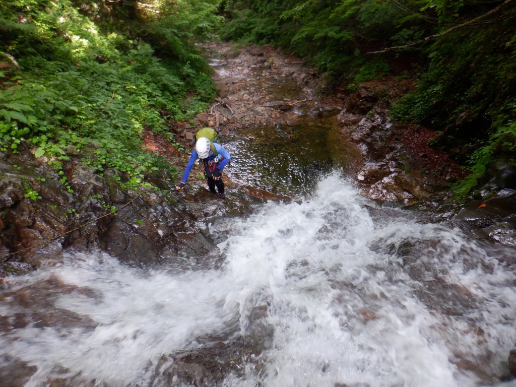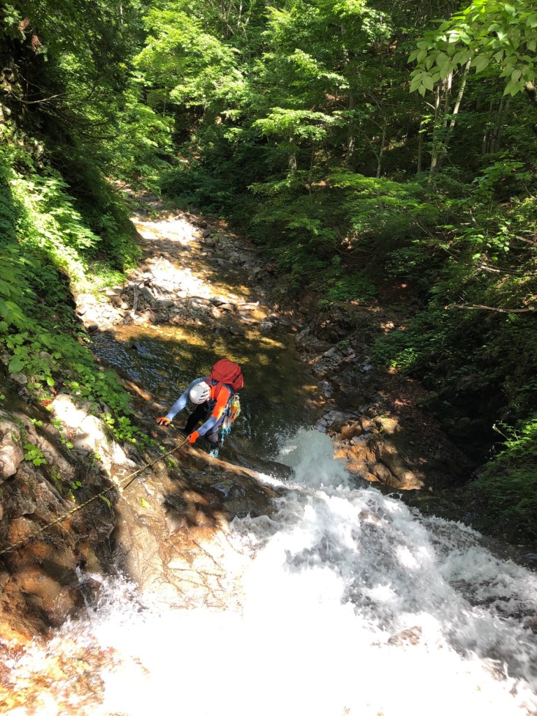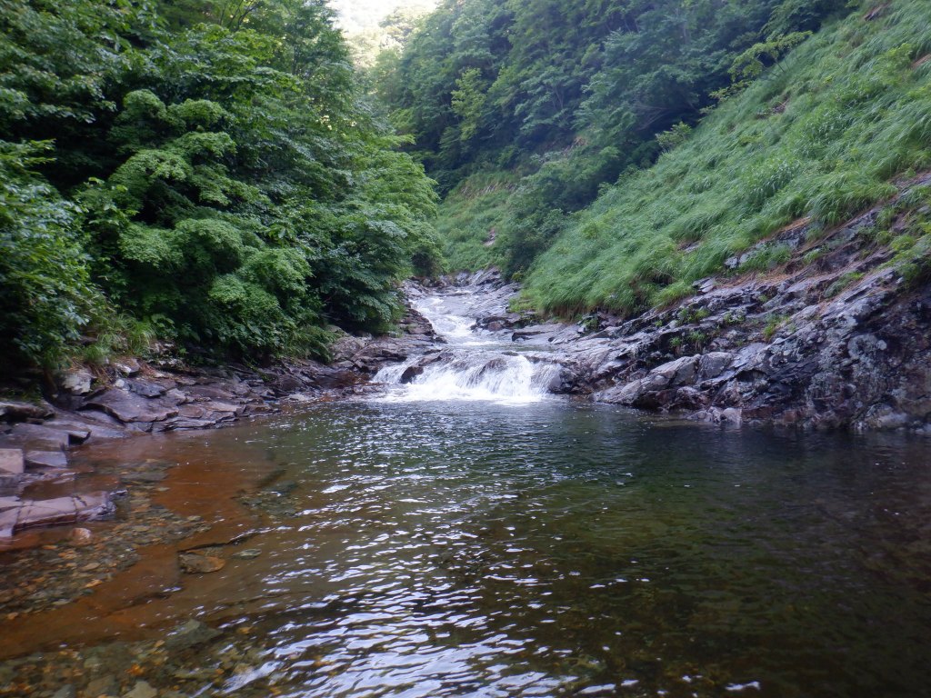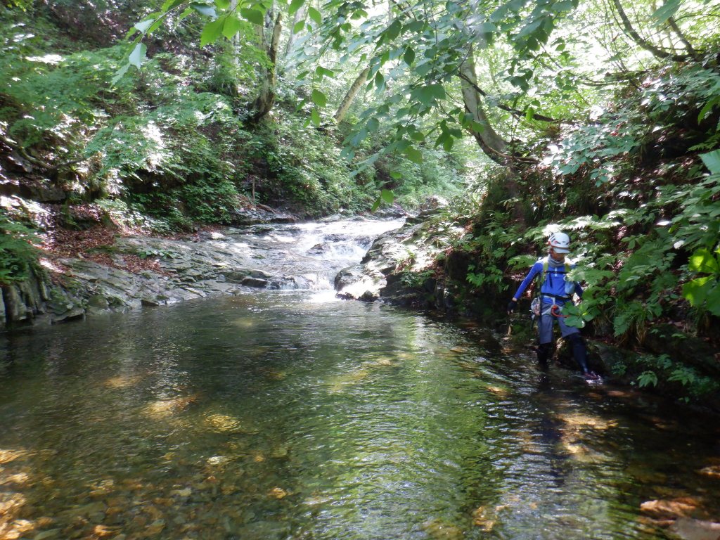(山宮)土曜日は湯檜曽川東黒沢~宝川ウツボキ沢~白毛門というルート設定をしてましたが、松本さんが入渓時点で『足が冷たい、寒い。』とテンション下がってしまったので東黒沢を奥ノ二俣まで遡行して引き返すことにしました。(実際は1:1の奥ノ二俣ではなくてその手前の2:1の二俣で引き返してました。)特に難しいところもなく癒し系の沢でした。