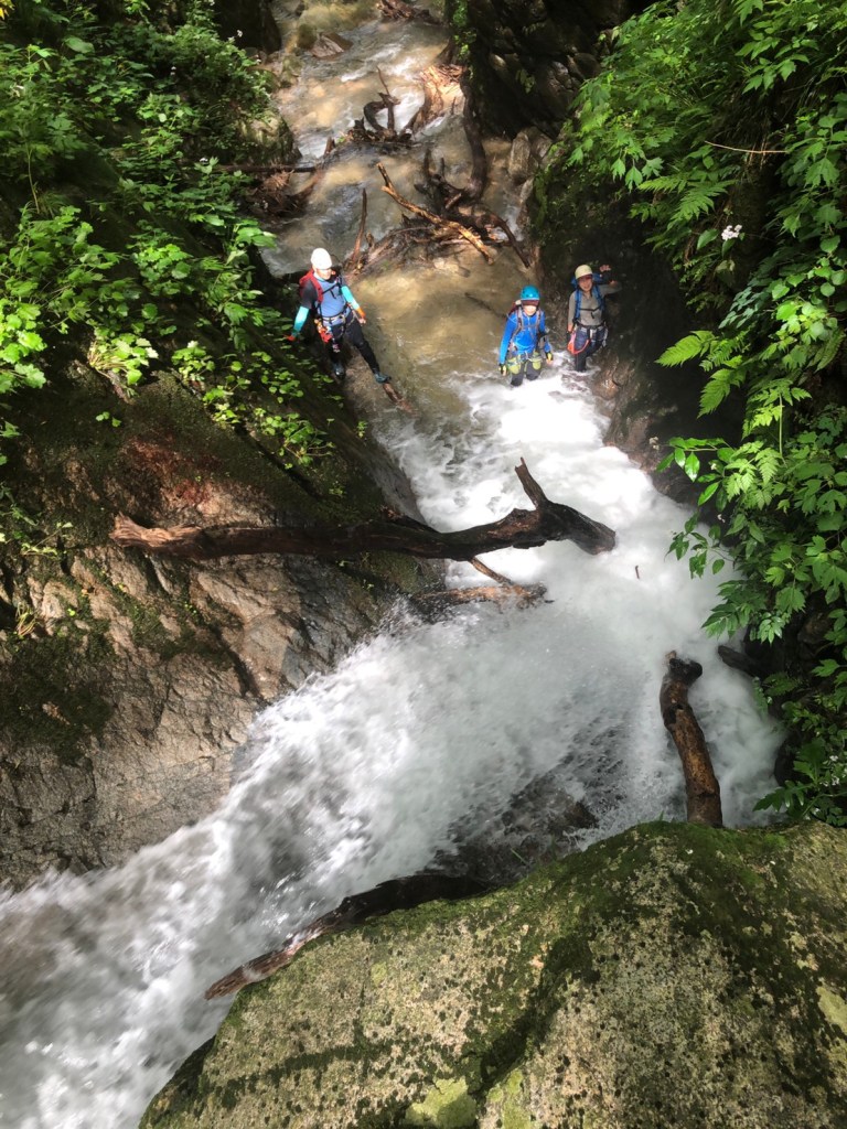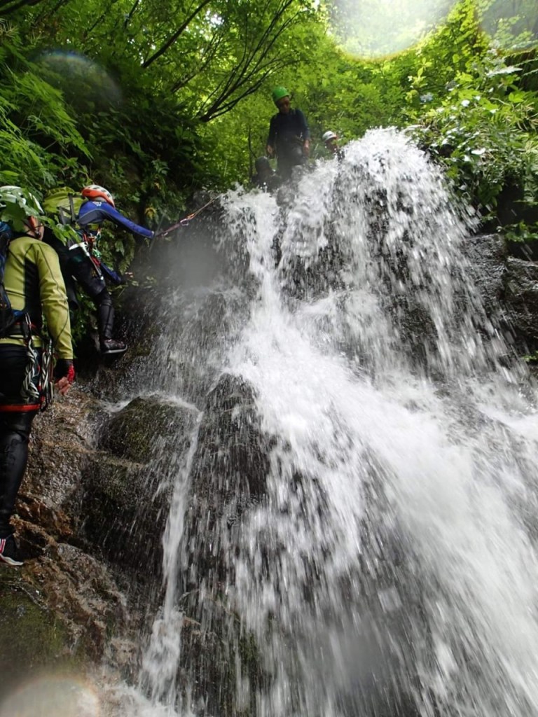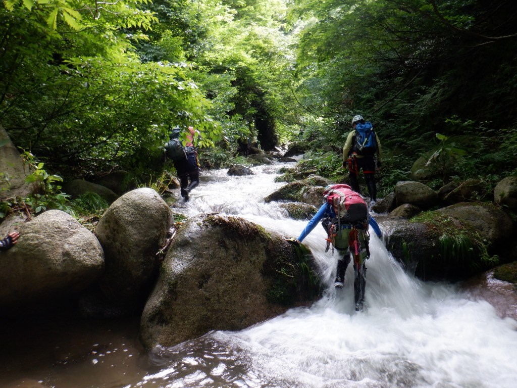 (進藤み)今回は天気もなんとかもちそうだし、私のリハビリも兼ね優しい沢で皆で遊べたらと思い急遽五頭の小倉沢を計画しました。思っていたより水量も多くリハビリと言うことを忘れ楽しくてハシャギ過ぎてしまいました。翌日は少し足が傷みました。反省です。シーズン初めの沢としてとてもいい沢だと思います。また皆で行きたいですね!