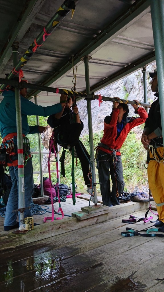 (進藤ま)アブミは何度もやっているので今回初めて登る人のサポートにまわりました。