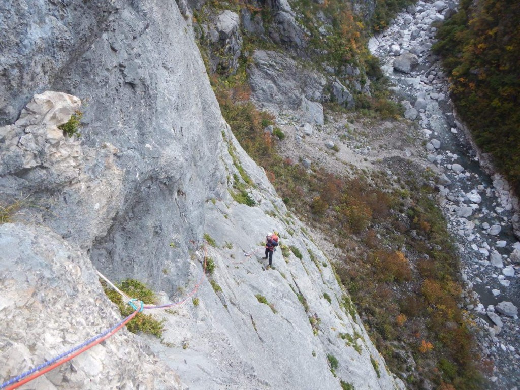 13P 階段状の凹角を上がってバンドをトラバース Ⅳ(フォロー)