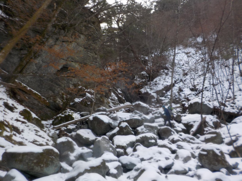 ・塩沢からはゴーロの沢歩きで、序盤は何度か渡渉があるので転倒やドボンに注意。中盤からは雪が出てくるので滑らないよう注意。