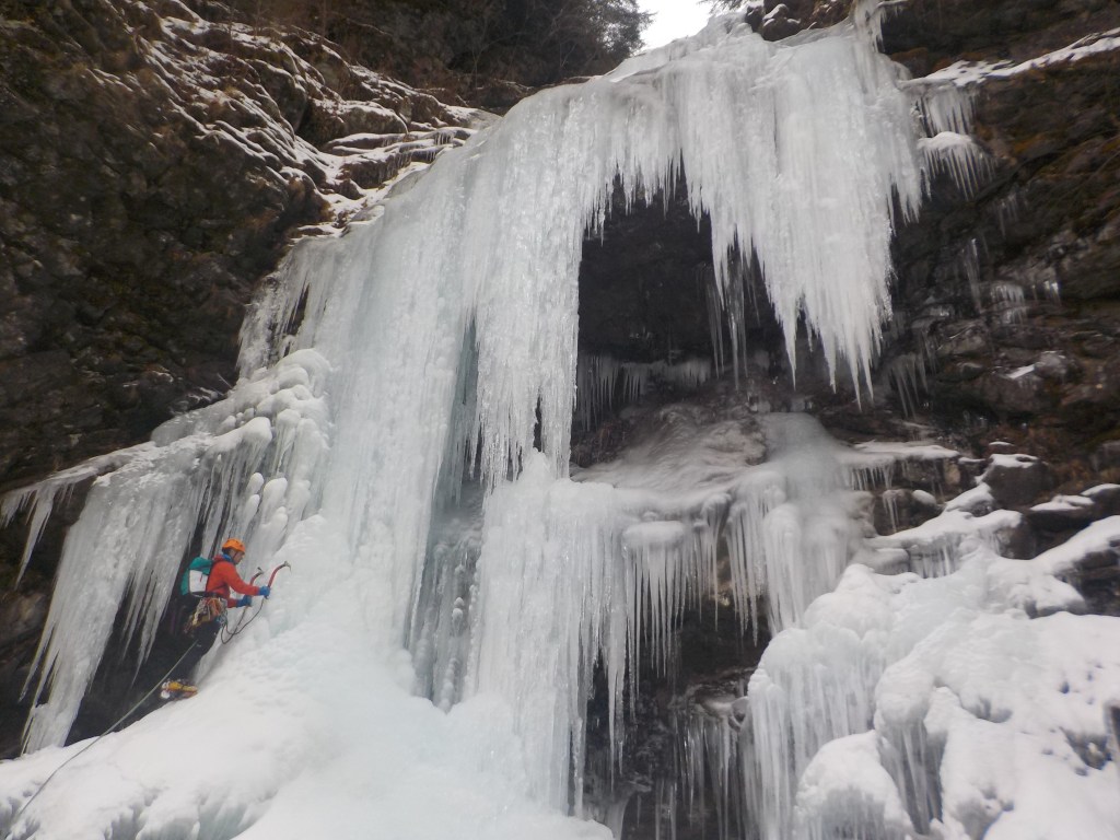 ・全体的に水っぽい氷でした。F2、F3、F10の下部はつらら集合体のスカスカのシャンデリア氷でリードはクリーニング必須&アイススクリューを決める場所を探すのが大変そうだった。