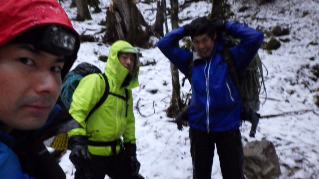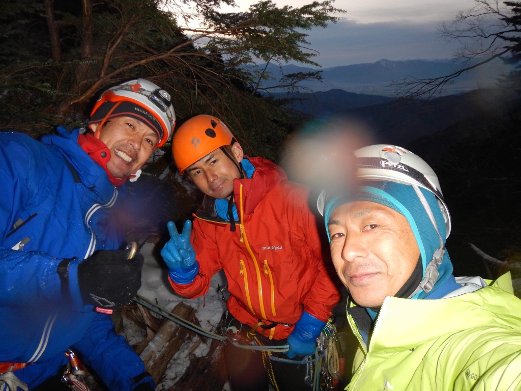 ・下山は灌木を支点にして懸垂下降で下りました。F10下からヘッデン下山になったので6m程度のF4でも積極的にロープを出して下りました。