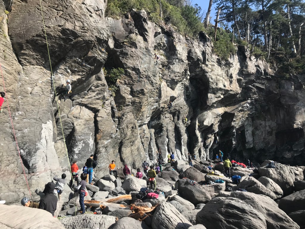 ★感想:(山宮)1/1~3まで城山を予定していましたが1/1の風の強さに気が滅入っていたところ、城山に来て登っていた新潟のジム友のTさんとFさんが1/2から城ヶ崎へ行くと言ったのでそれに乗っかり我々も城ヶ崎へ移動。城ヶ崎は風の影響はなく暖かかったです。1/2のクラックはTさんにトップロープをセットしてもらいクラックを楽しみました!(今年はクラックのリードもやらなきゃなー・・・)1/3はTさんとは別れFさんを含めた3人でなぜか高グレードしかないエリアへ行きました。登れるルートは限られていて5.10bを2本登って13:00頃に早々と撤収し、大雪の新潟へと帰りました。