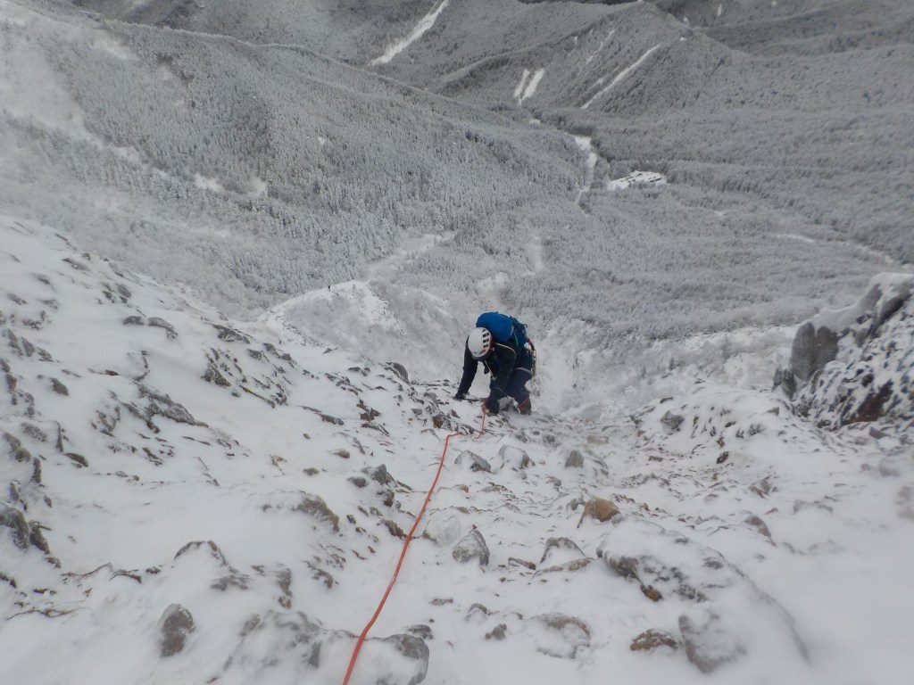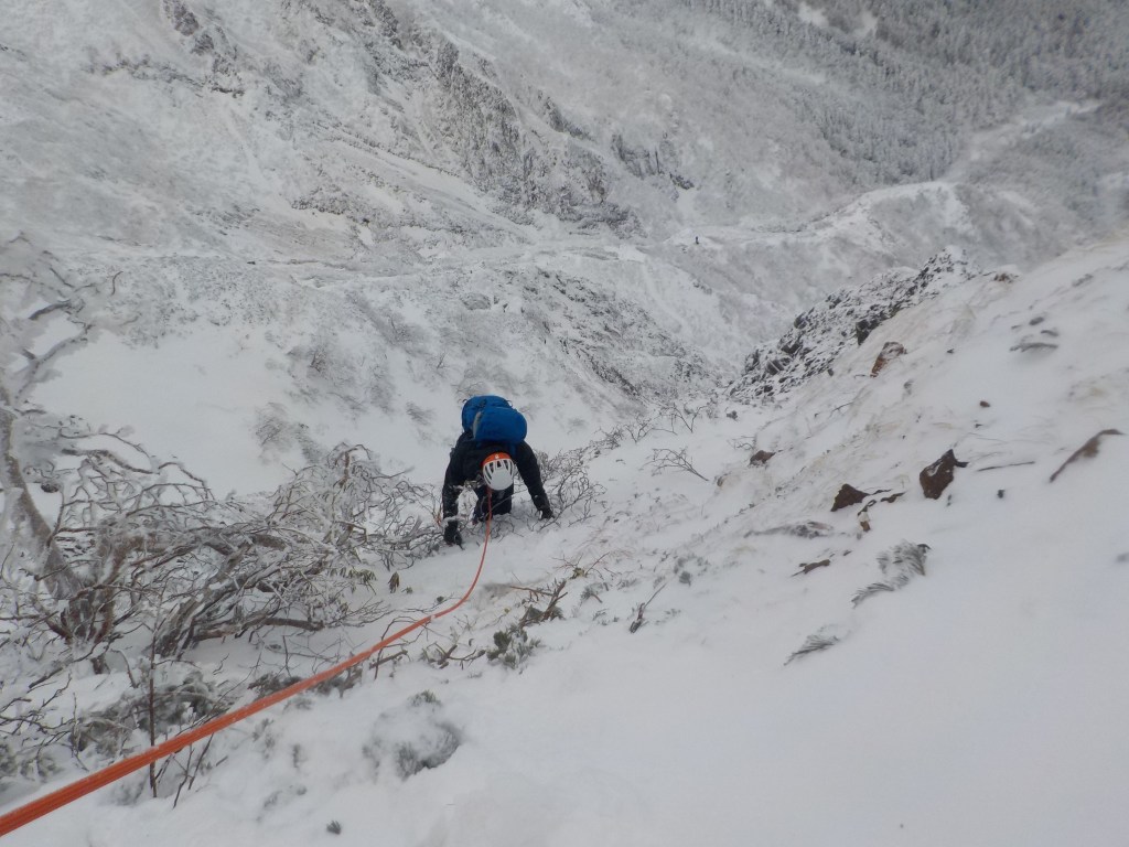 ・4P終了点でロープを仕舞い後はフリーで登り一般登山道へ。落ちるようなところではないが絶対に落ちてはいけない。