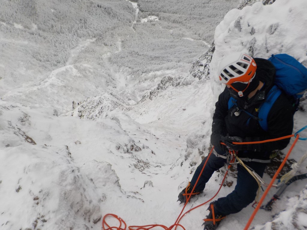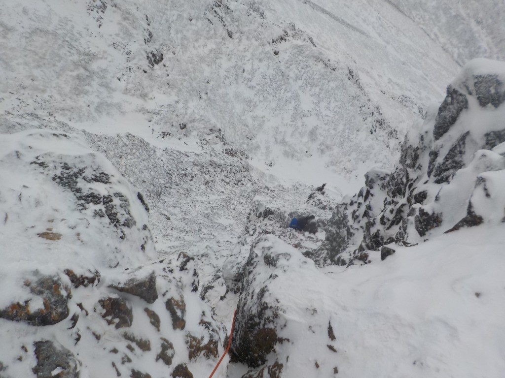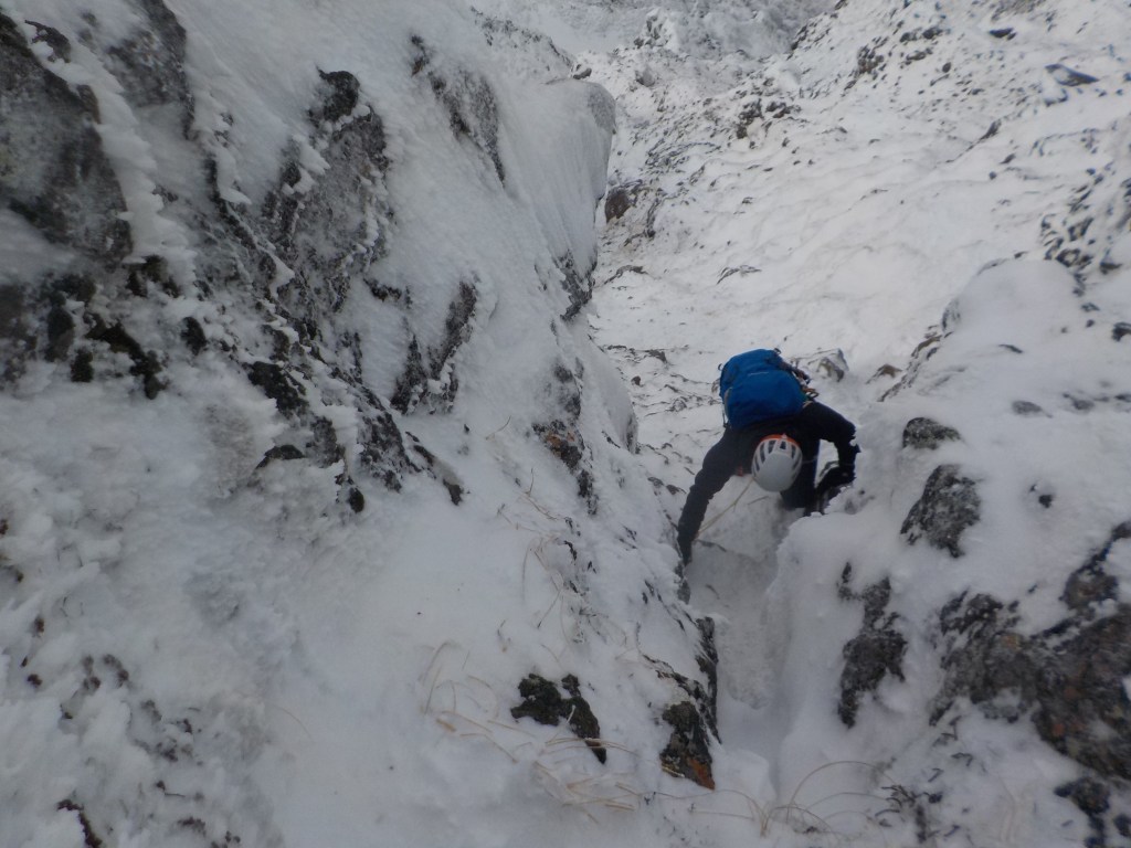 ・積雪量は少なかったです。1P目のチョックストーンは下からくぐれます。