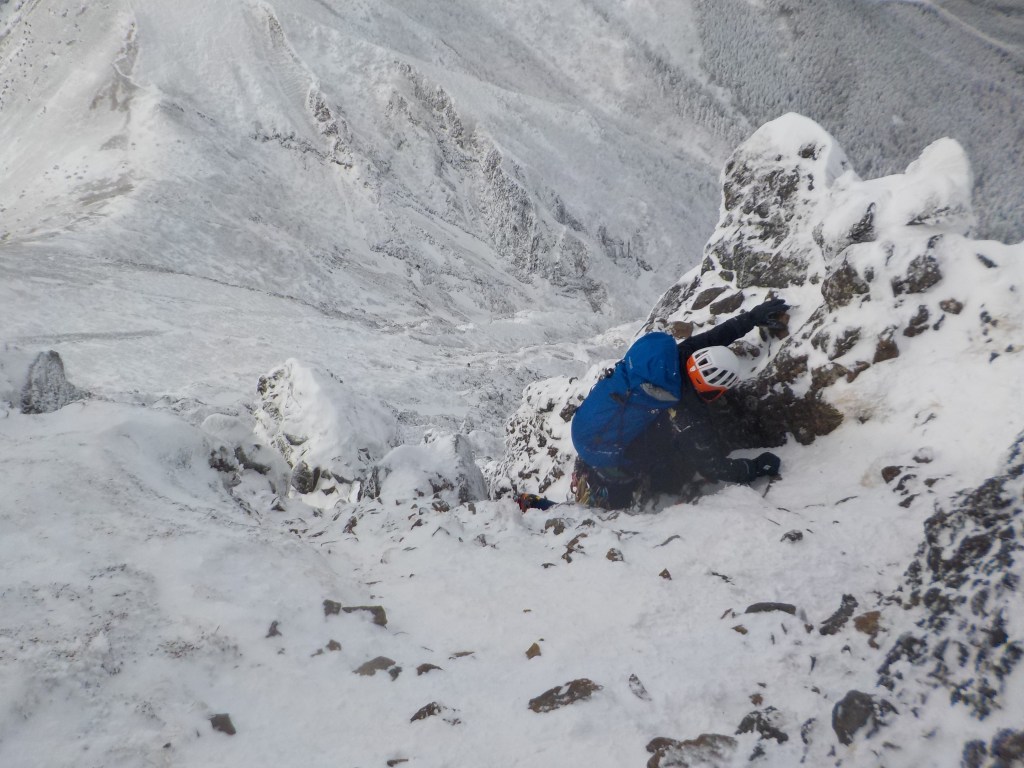 ・主稜取付へのトラバースは雪が少なく雪通しでトラバースできませんでした。むき出しの岩はボロボロで歩きづらくある意味ここが一番の核心でした。