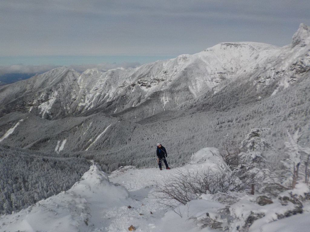 ・岩が脆そうだったので念のためロープを出しましたが出だしを登ってしまうと後は階段状で問題なし。プロテクションは最初の残置ハーケンのみでした。終了点は残置スリング巻いてあるピナクルに自分のスリングで構築。
