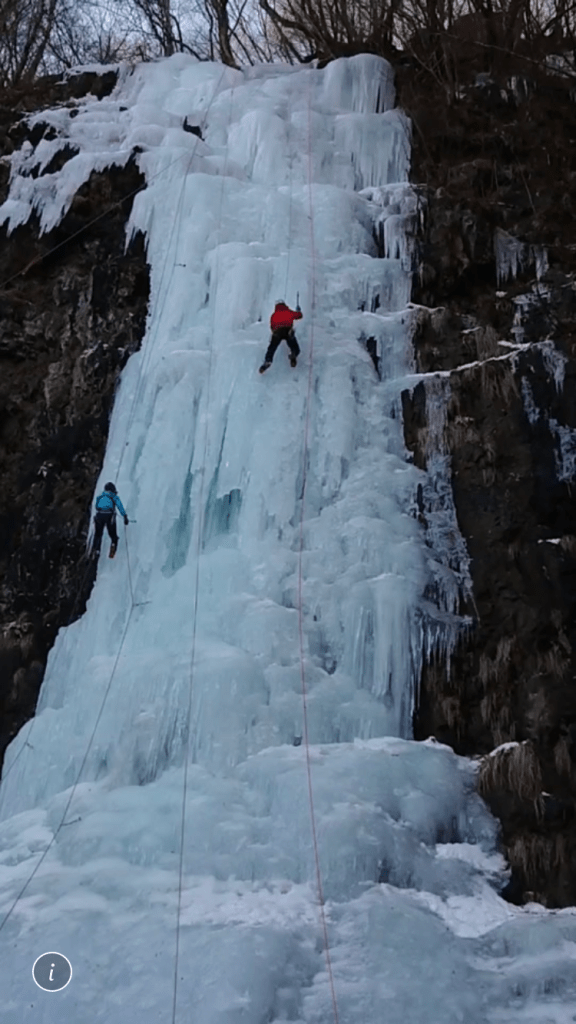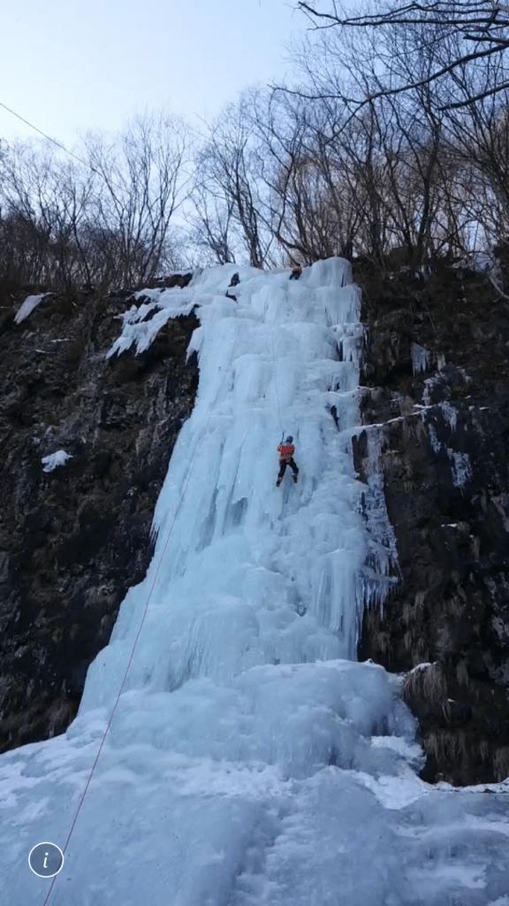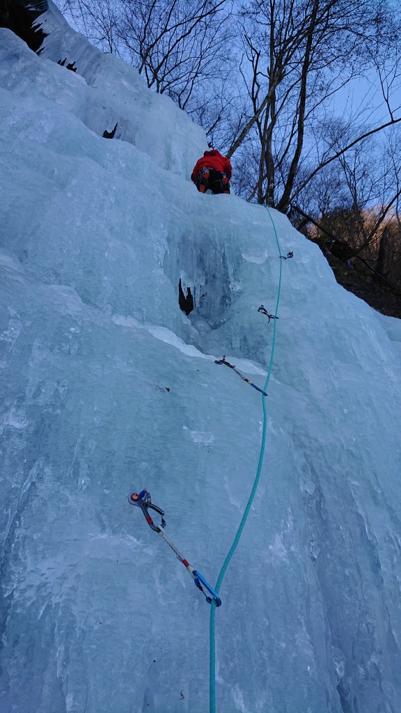 (山宮)大氷柱を簡単なラインですが安定してリードで登れて良かったです。後半のアイススクリューが多かったので減らせていけるようにしたいと思います。