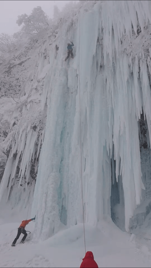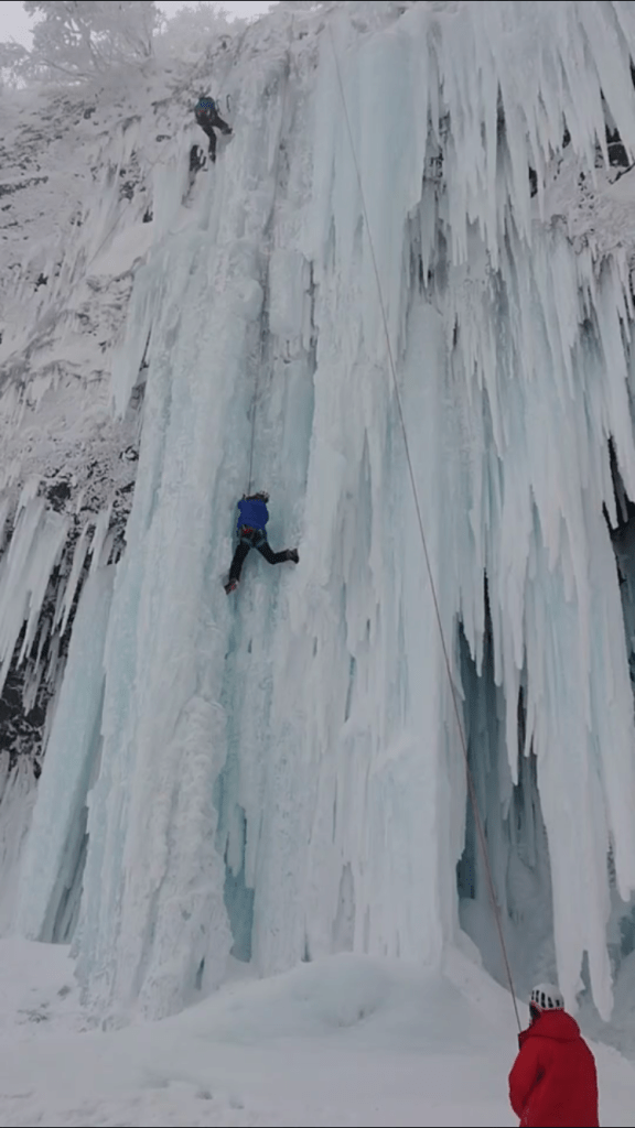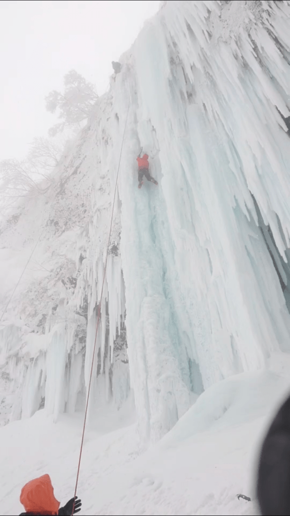 (進藤み)ミニ氷柱をテンションかけながらでも上までリードで登れたのは自信になりました。大氷柱の右のラインをトップロープで登りましたが今度はリードでチャレンジしてみたいです。