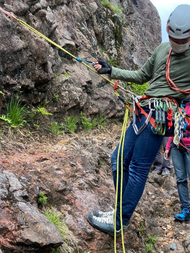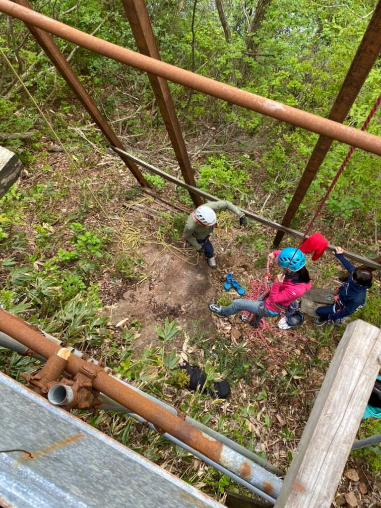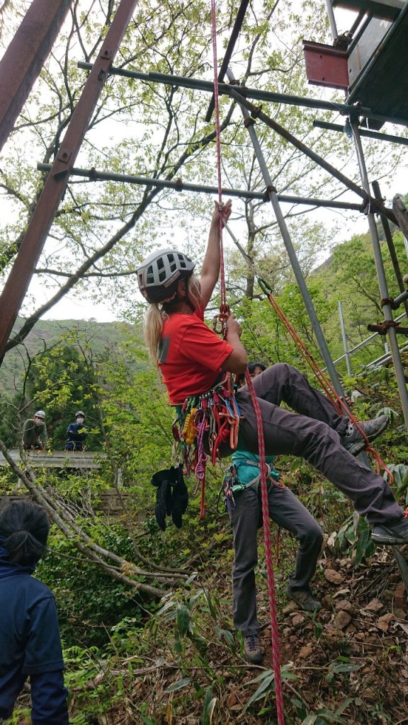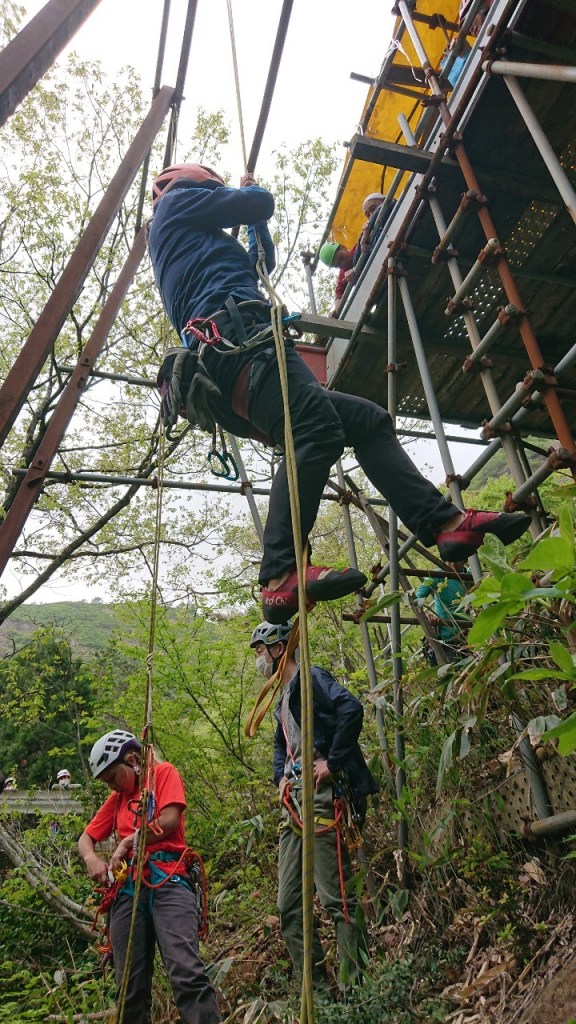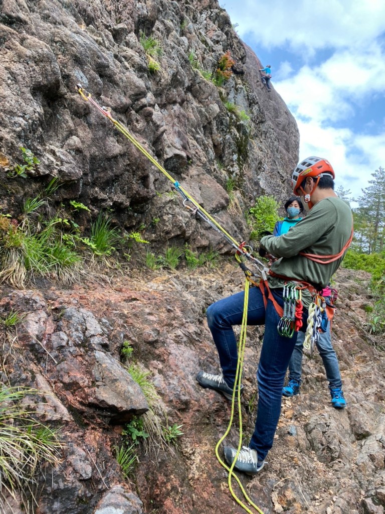 (進藤ま)ATCを使った登り返しの方法がうろ覚えだったのでしっかり確認できて良かったです。ATCとロープの相性もあるのか私のATCではロープが上手く引きなかったです。