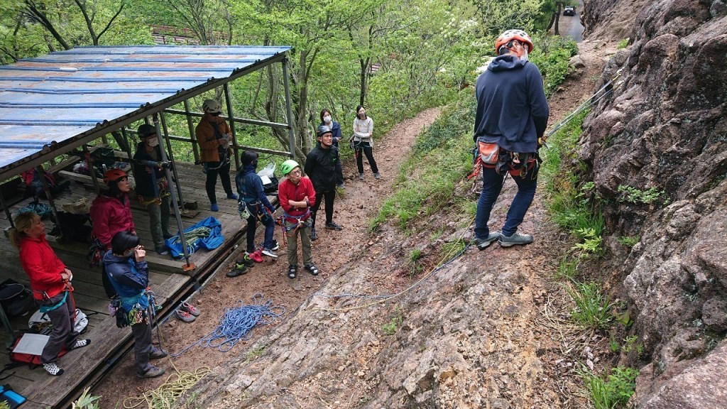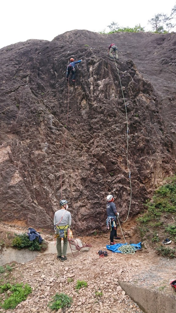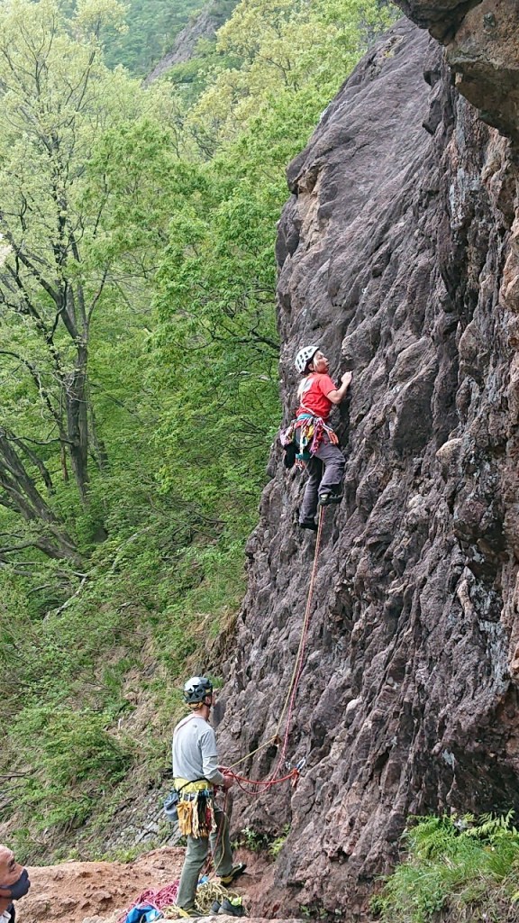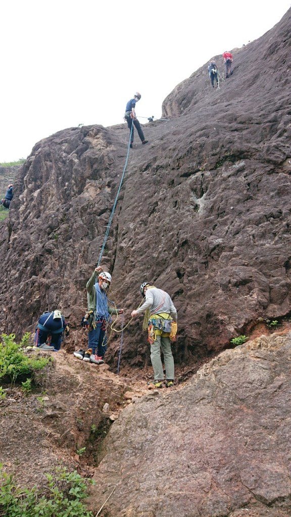 (阿部)つるべで登ろうと登ってみたが岩場は怖かったので断念した。懸垂下降の時のロープの投げ方を教えてもらい勉強になった。岩場の経験が浅いのでこれから積極的に岩場に通いたいと思います。