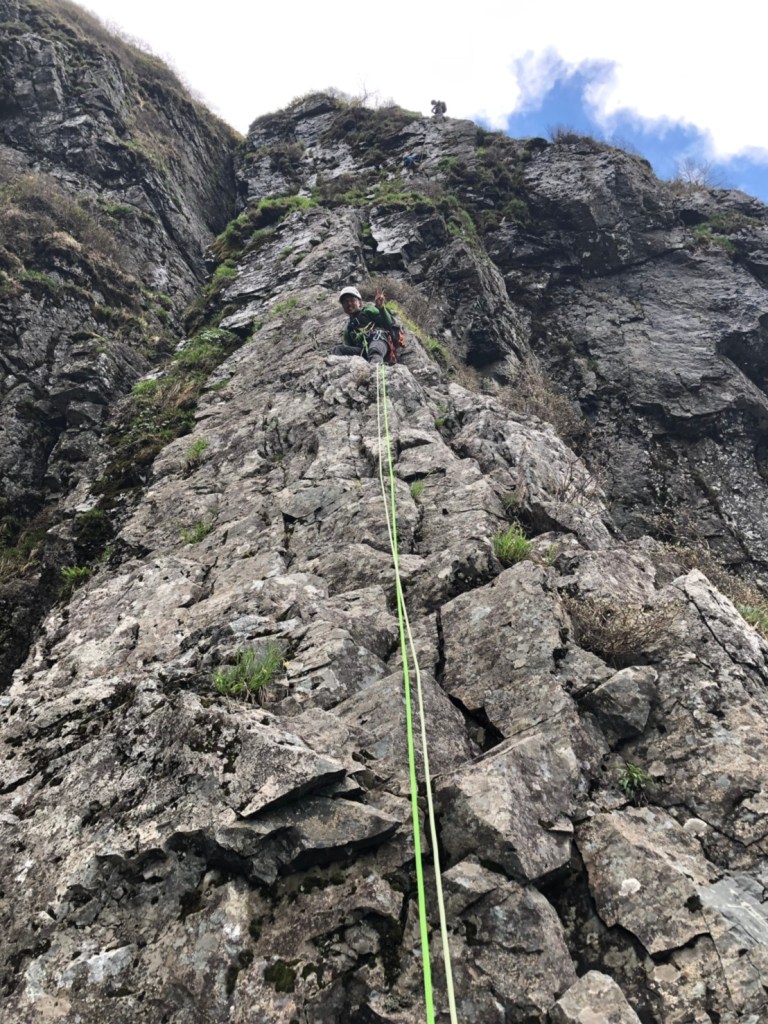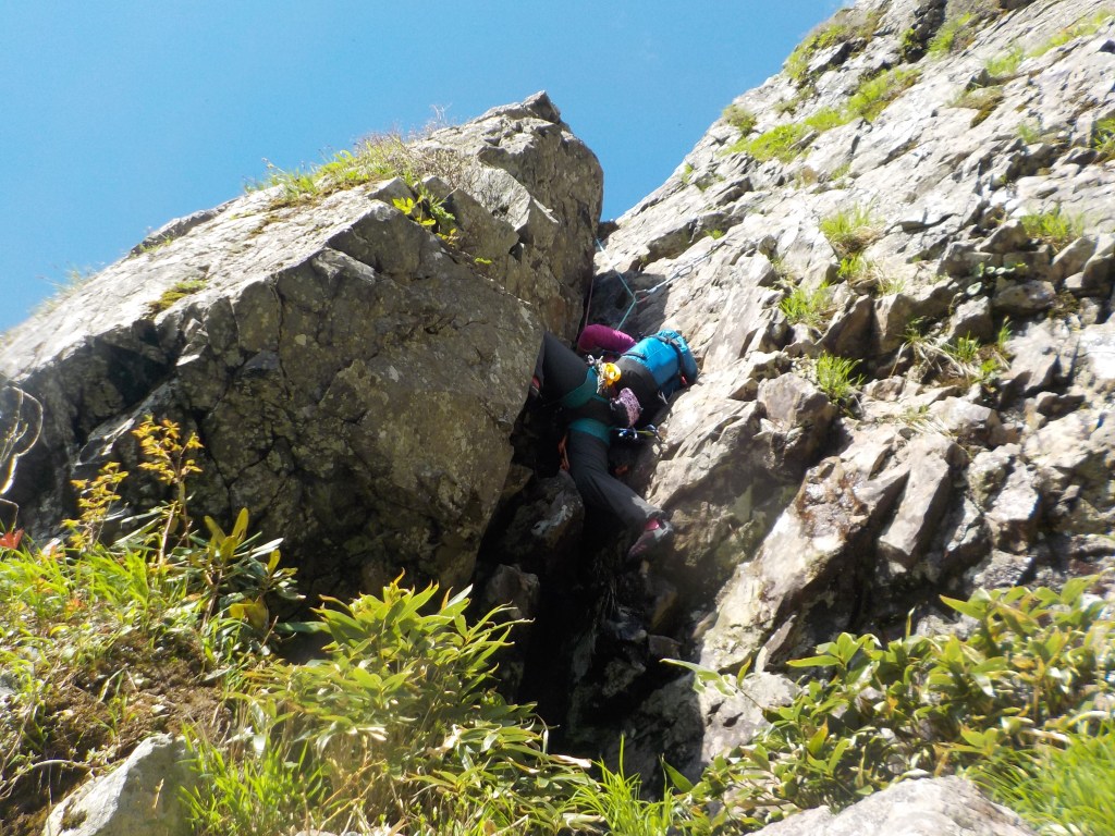 (銅谷)5年前は雨が降ってチムニーが越えられなかったけど、今回は越えられて良かった。A0しまくりでしたがリードでも登攀できリベンジ出来て良かったです。竹内さんの頑張る姿に感動しました。