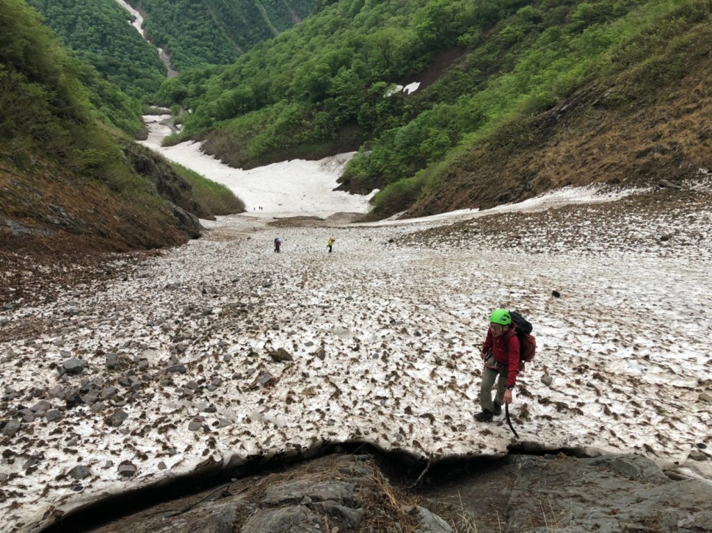 ・雪渓歩きに慣れてない人はチェーンスパイクがあると安心だと思います。