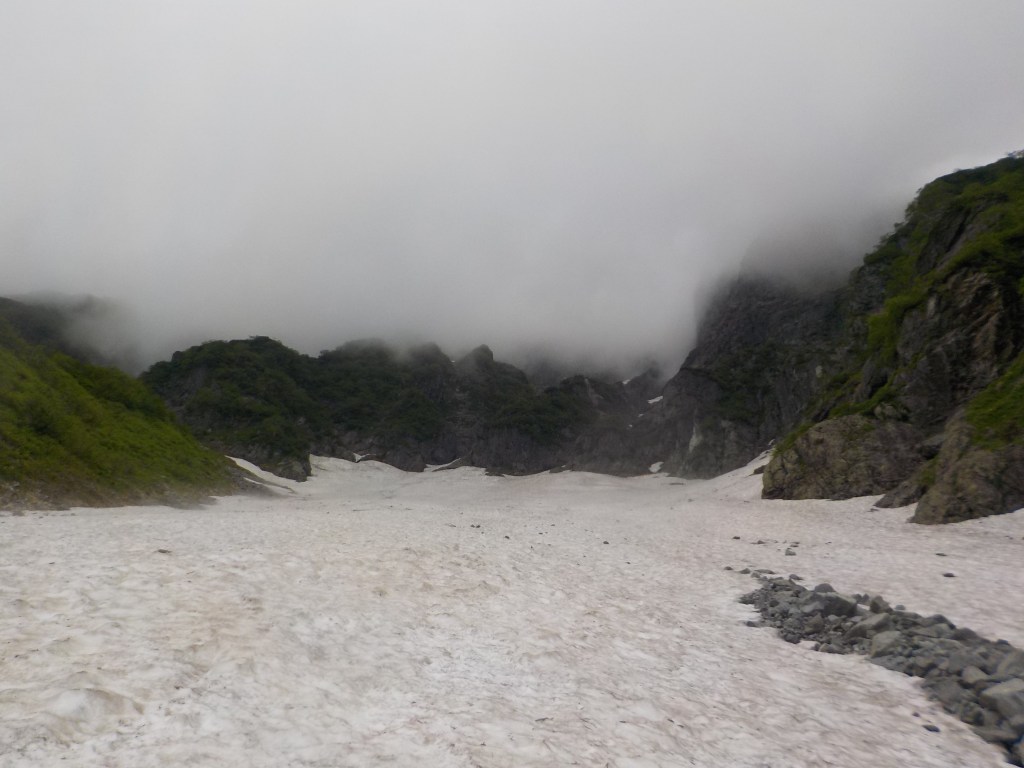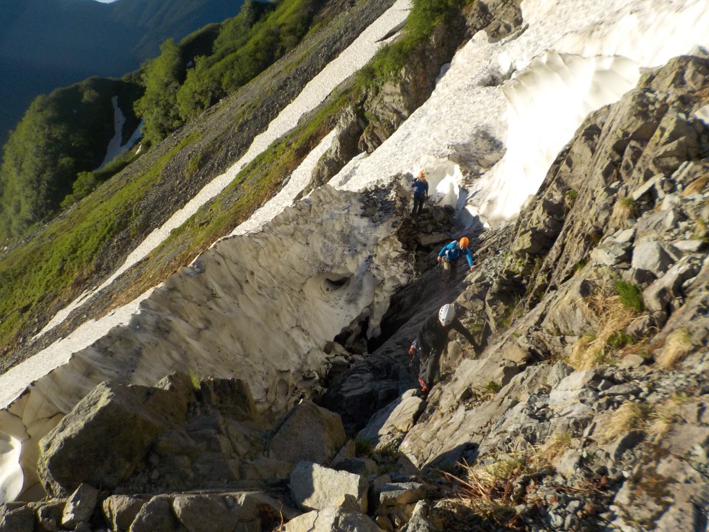 ・C沢の出合付近の雪渓にクラックがありましたが、岩が露出した部分に容易に下りれてC沢の雪渓に容易に上れました。
