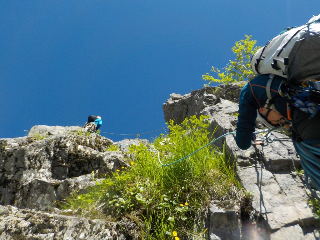 ・出だしの垂直のフェイスは先発フォローのSさんに下からアブミを2本渡し残置して登ってもらい後続フォローOさんが回収しました。