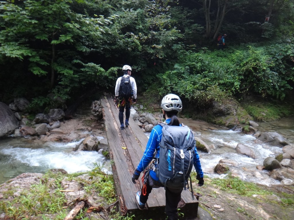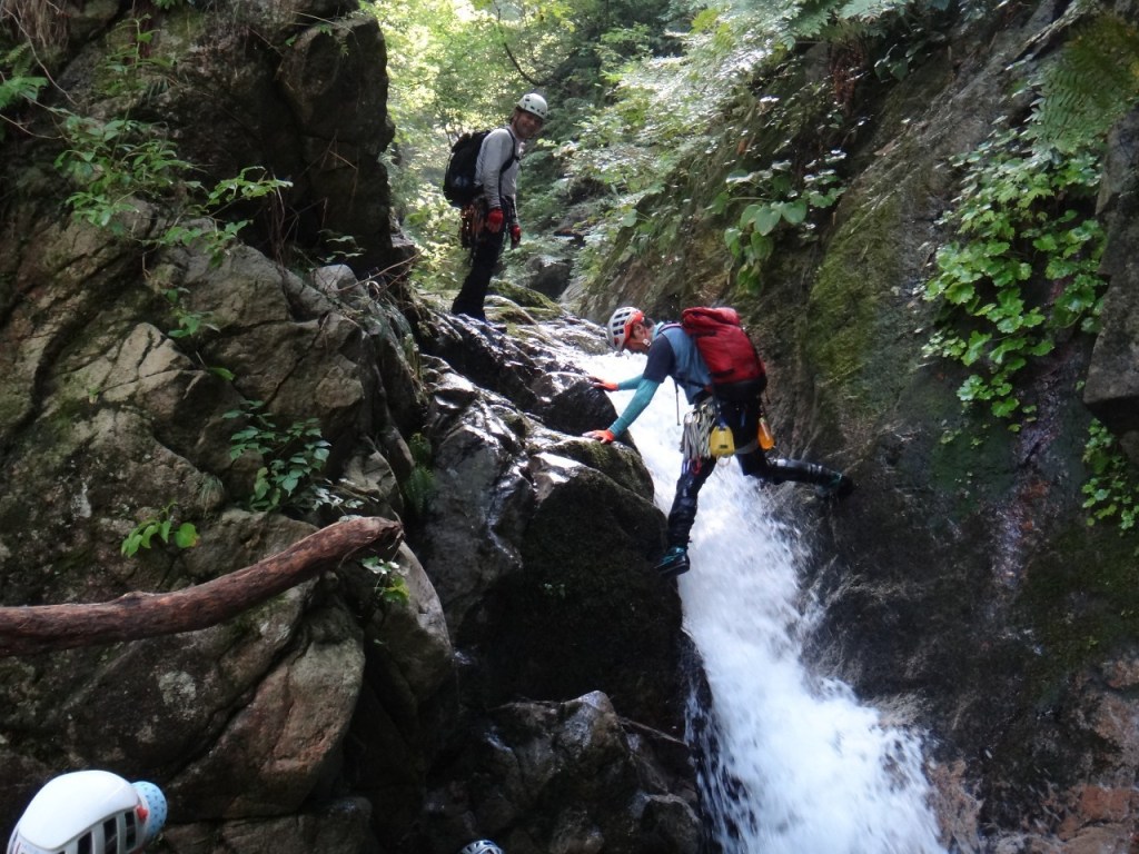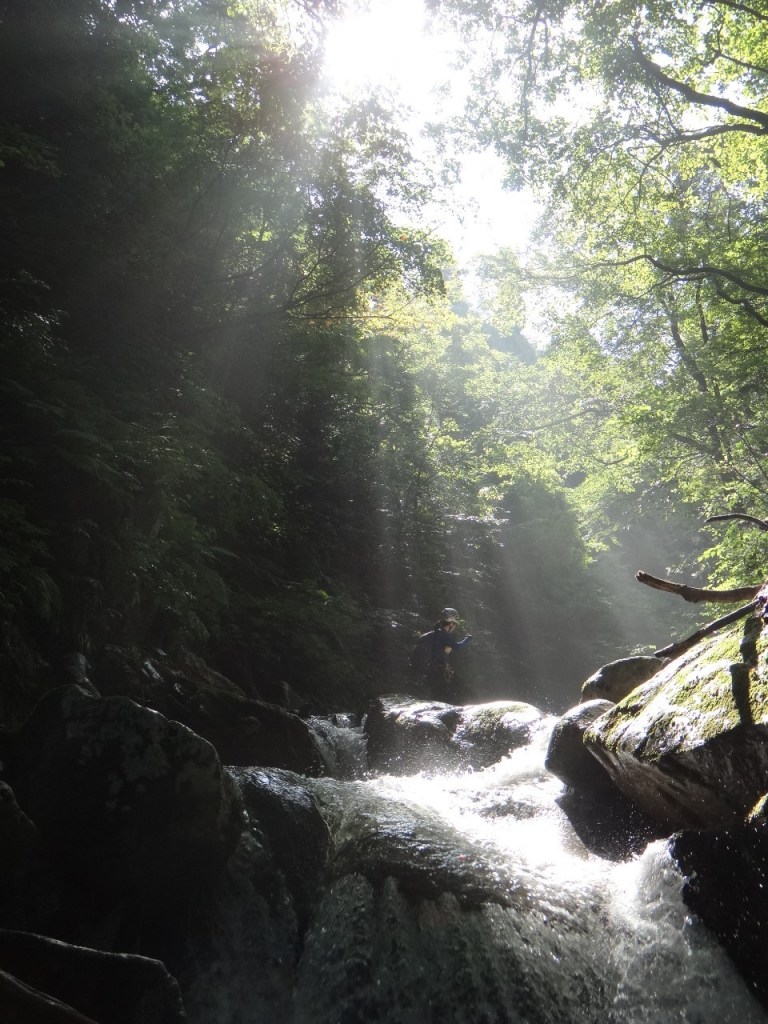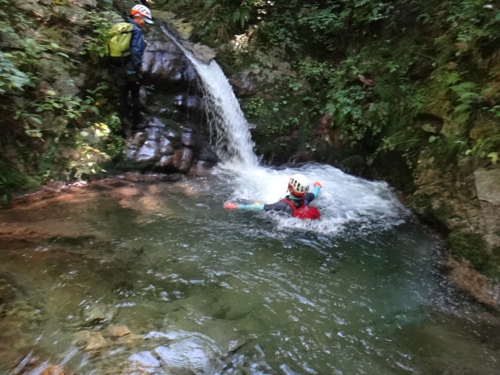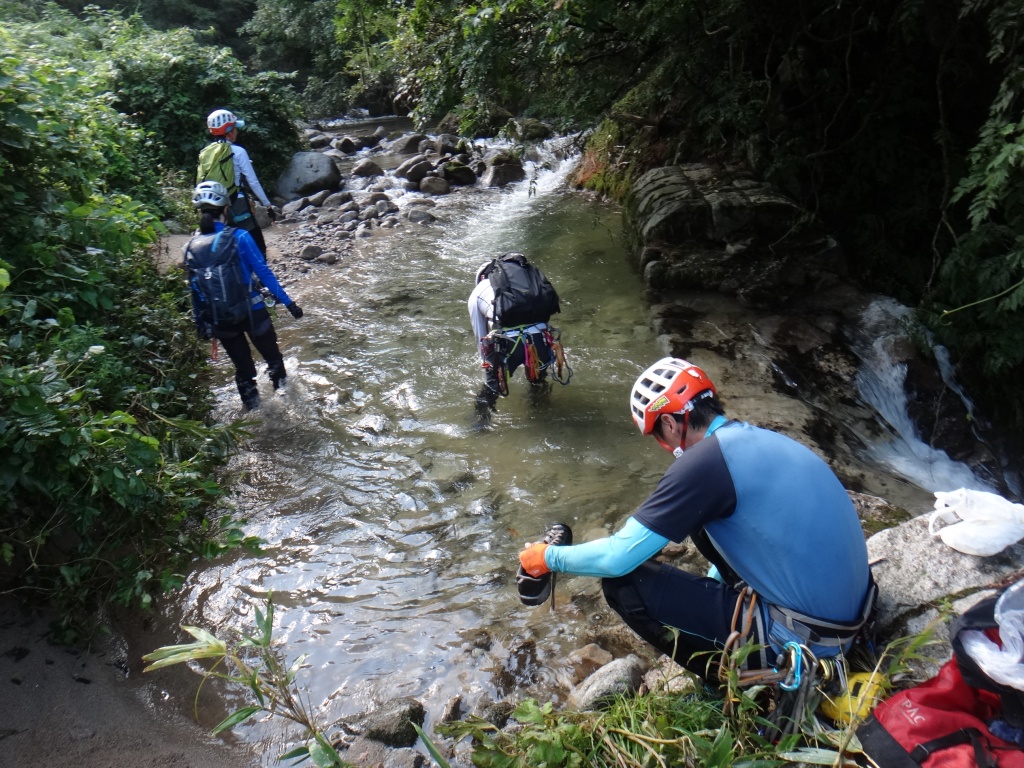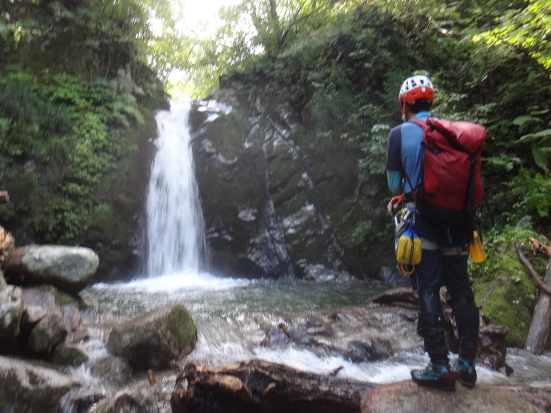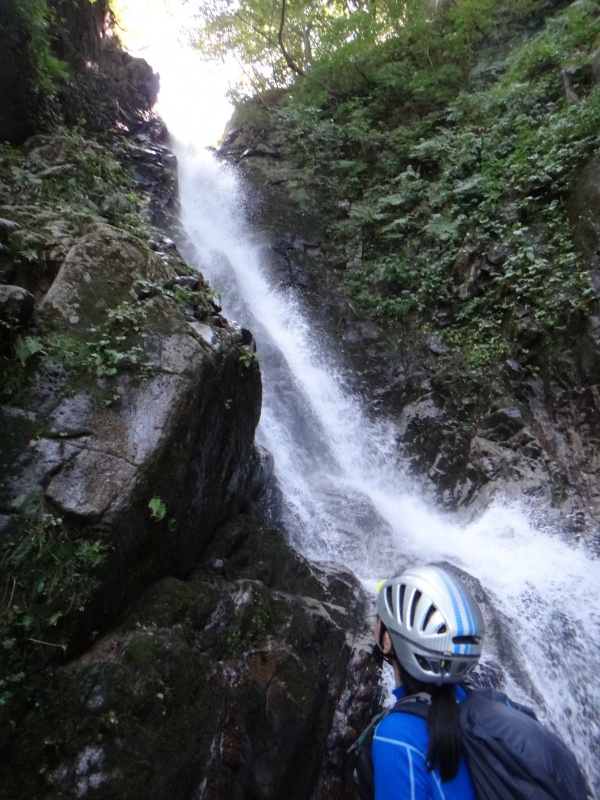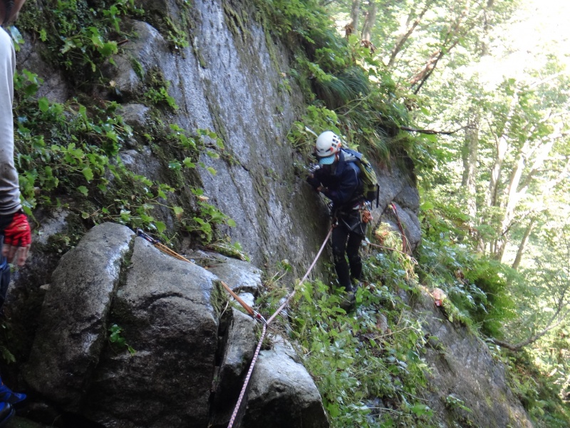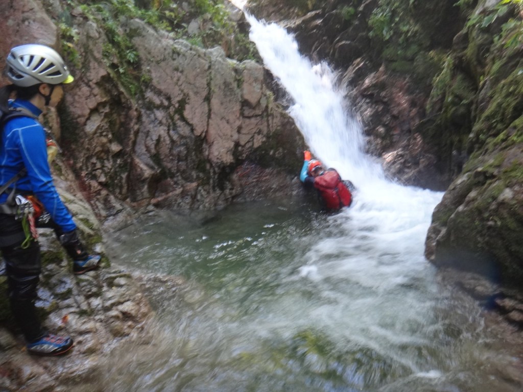 (神蔵)今シーズンから登攀系の沢にも挑戦して来て昨日はその集大成という思いで臨みました。入渓早々「今日は水量が多い!」と言われた時には不安が募りましたが、段階的に取り組んできた成果かか緊張しながらも楽しい沢登りでした。危険箇所でのリーダー、サブリーダーの機転の利いた対応には視野の広さとロープワークの応用力の高さを感じました。少しでも見習えるよう今後も少しずつ経験を積んで行きたいです。