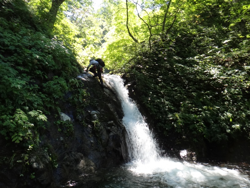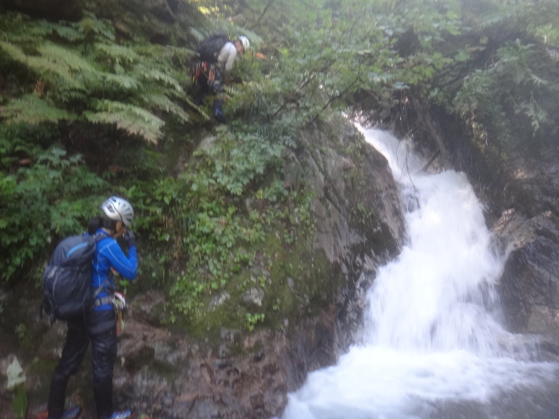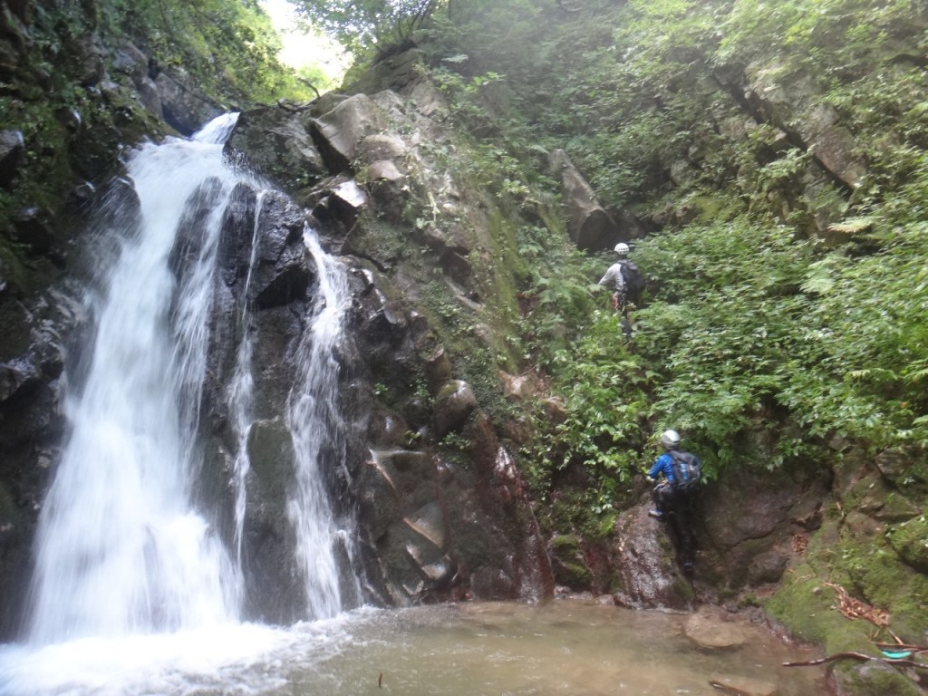 ・大荒川本流から小倉沢に入ってすぐの芳兵衛の滝は右から巻きました。しばらく進んで2段10mの滝も右から巻きました。4mS字滝手前の4m滝と5m滝はまとめて右から巻きで西小倉沢へ入ってからの12m滝は左から巻きました。(最後の12m滝の巻きは以前に比べてかなり悪くなっています。岩はもちろん木の根も抜けそうなので登るときは慎重に!!少し手前に戻って草木がしっかりしているところから高巻いた方が安心かも。)