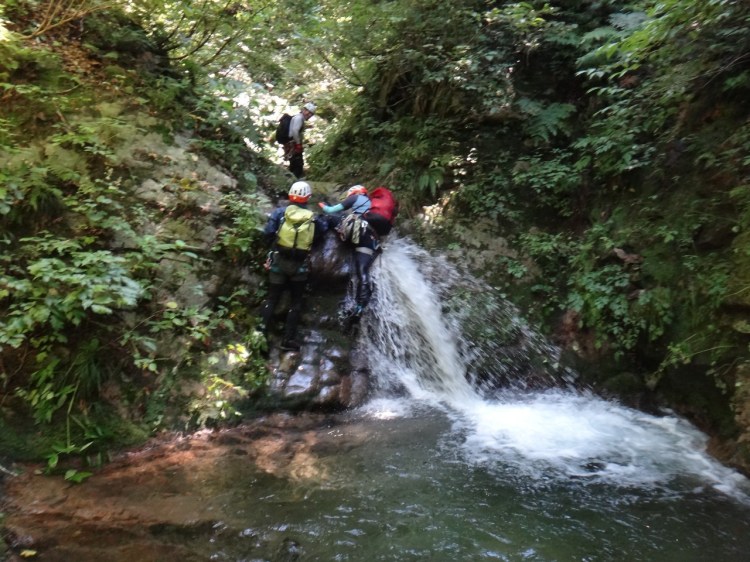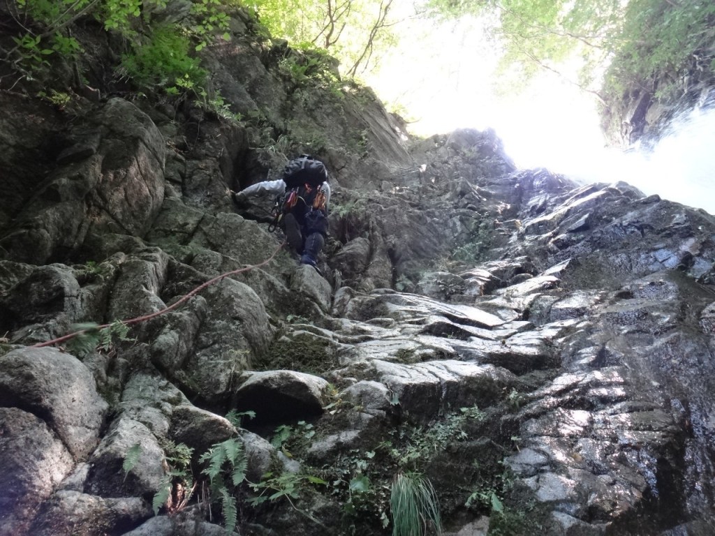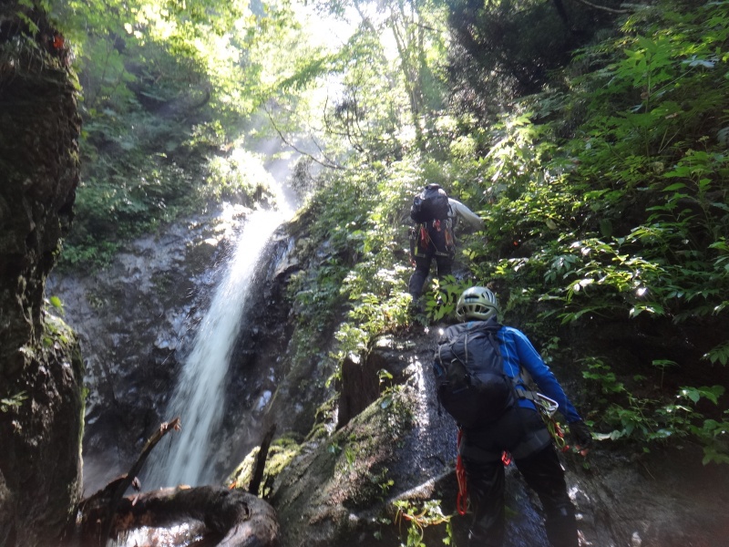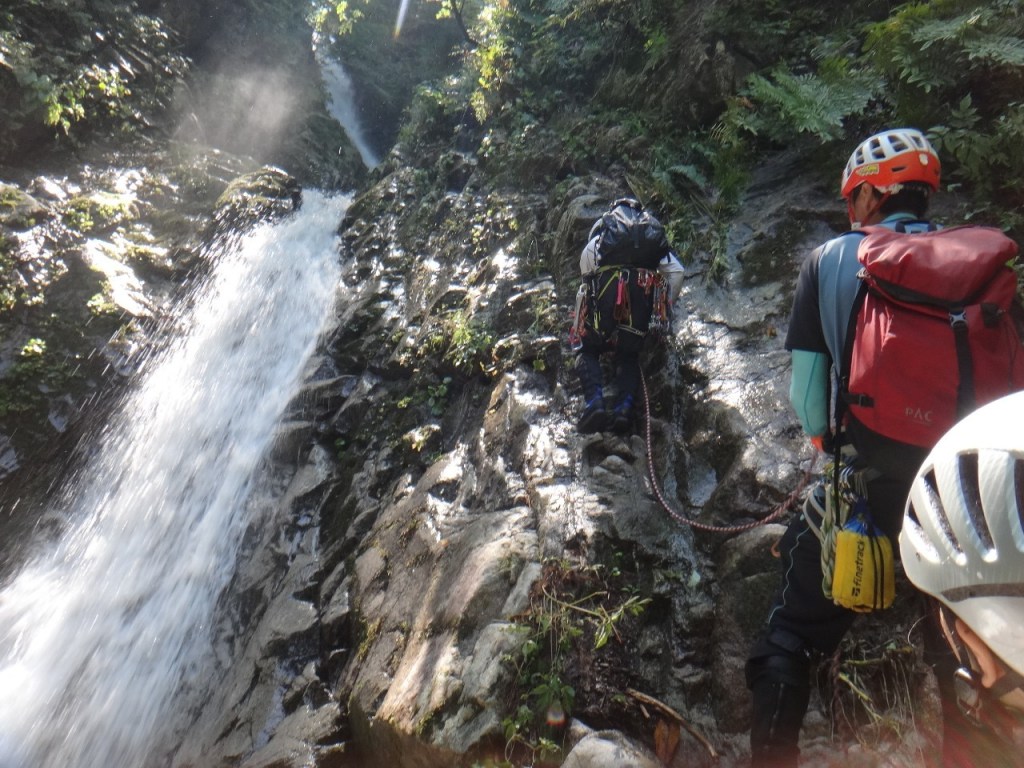 ・前衛10m滝と三十三間滝の2ピッチをロープを使って登攀しました。