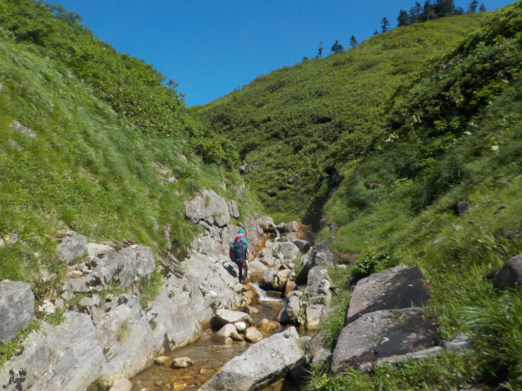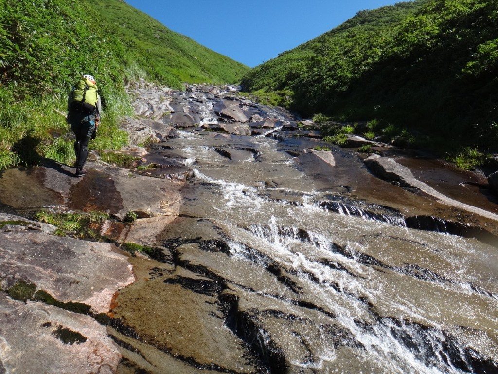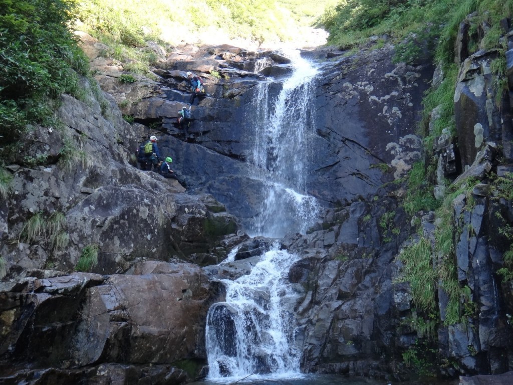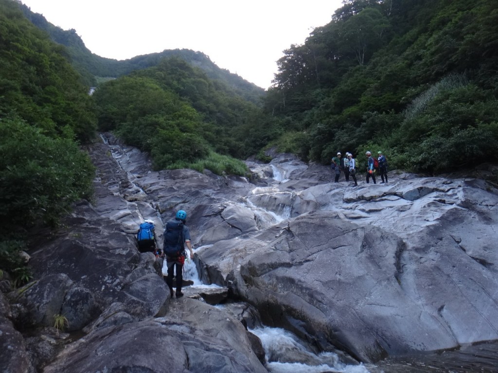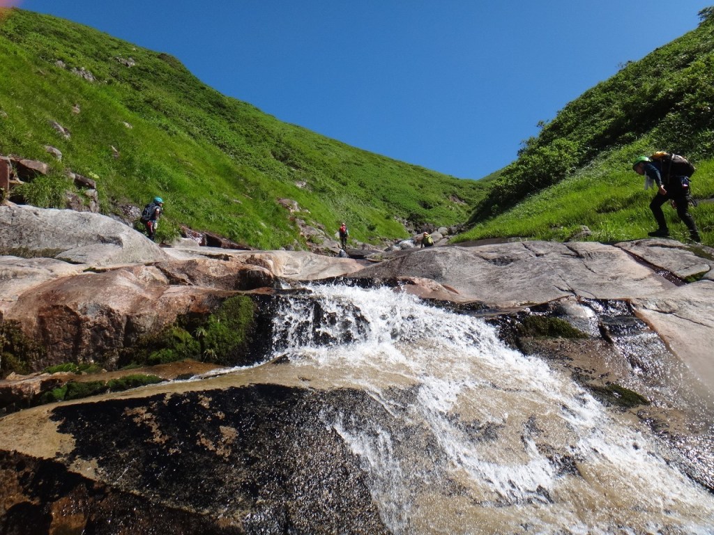 (銅谷)いつか行ってみたいと思っていた初米子沢でした。最初のゴーロ歩きで結構疲れてしまいまい肝心の沢で足が上がらなくて、まり子さんに何度も足を押して貰って助かりました。大ナメはとてもキレイだったけど滑るのが怖かったです。水は冷たかったけど天気も景色も良くて楽しかったです。ありがとうございました!