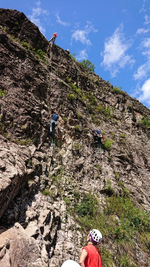 ★参加者:アブミ練習:進藤み、進藤ま、石附、銅谷、高橋、岸畑、山宮、松本。フリークライミング:野村