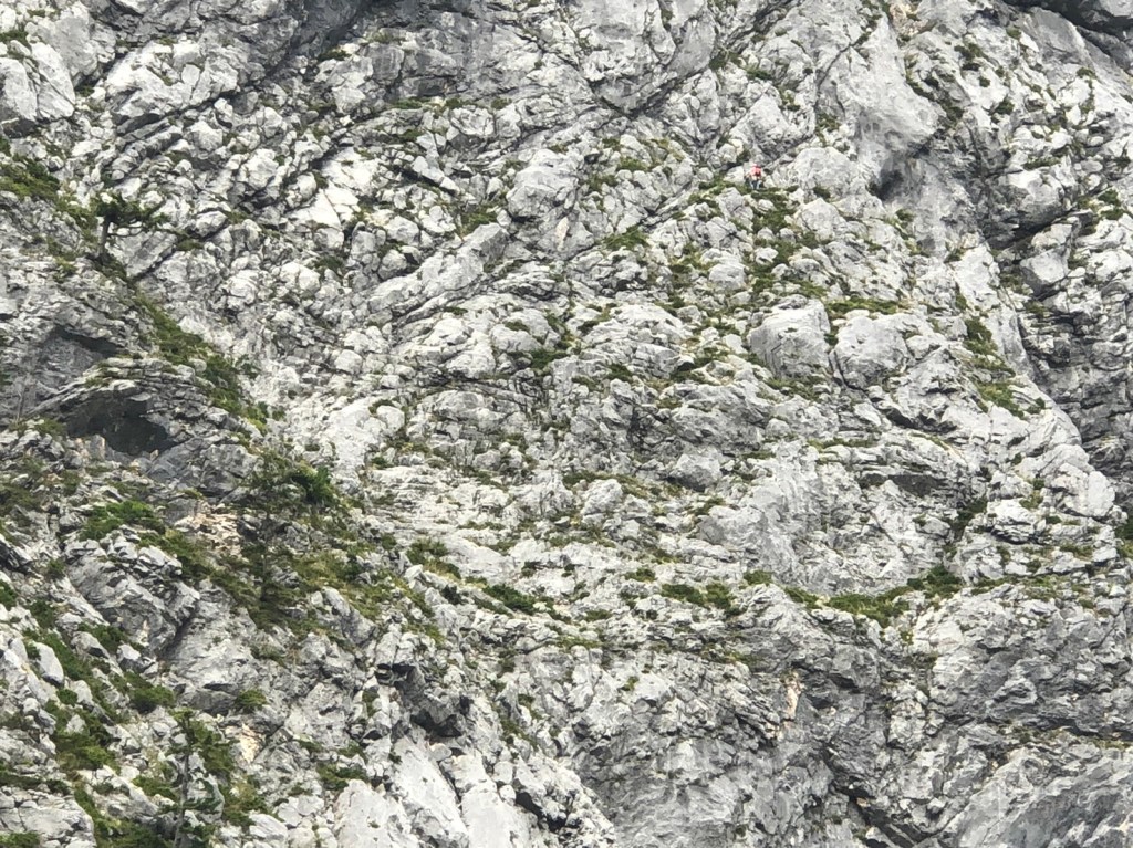 ・中央バンドのガレ場を横断して適当なところから一段上のテラスへ登りました。