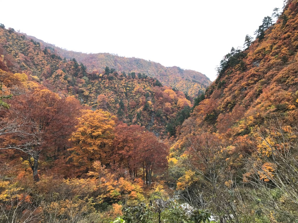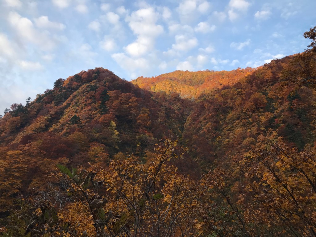 ★感想:(山宮)土日は黒伏山南壁でアルパインクライミングをと計画していましたが、土曜の中央ルンゼ登攀で黒伏山南壁はもう十分という事になったので日曜は以東岳へ紅葉を見に行ってきました。大鳥登山口から大鳥小屋までの区間の紅葉が綺麗でした。稜線上は一転して先日の雪が残っているところもありました。
