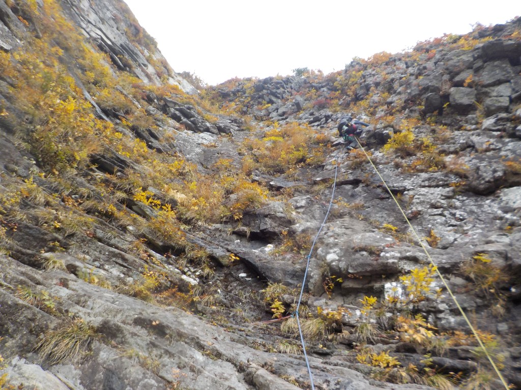 ◆中央ルンゼ終了点(9P目終了点)~中央ルンゼ取付