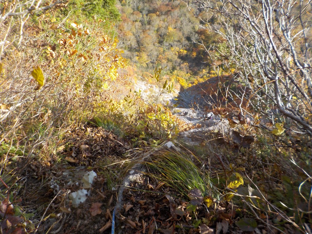 ⑥1P目終了点から取付まで50mロープ2本で懸垂下降。