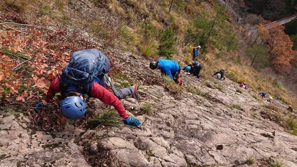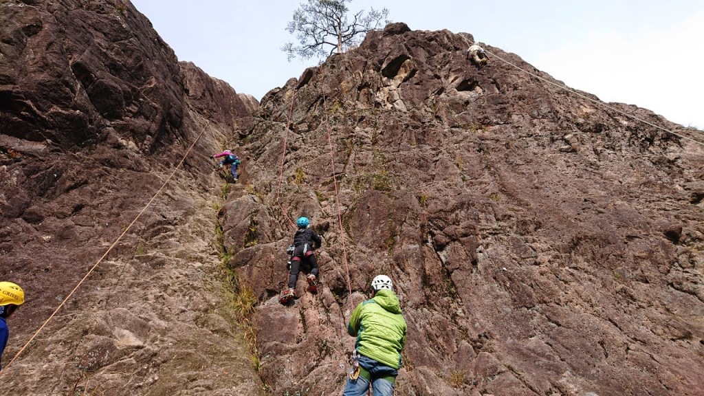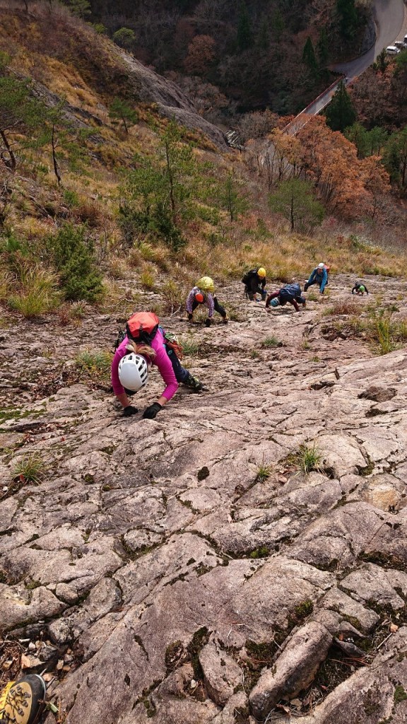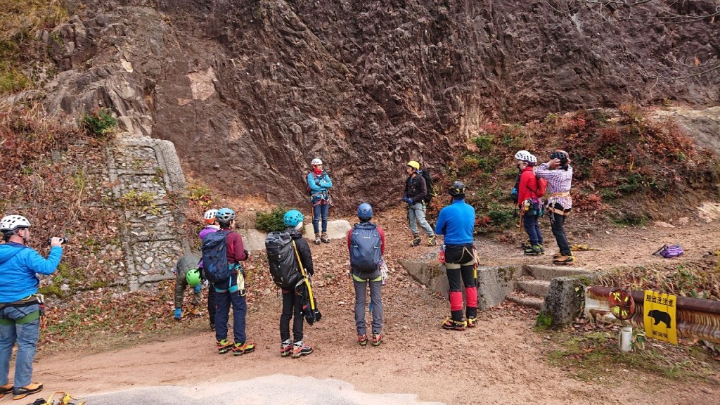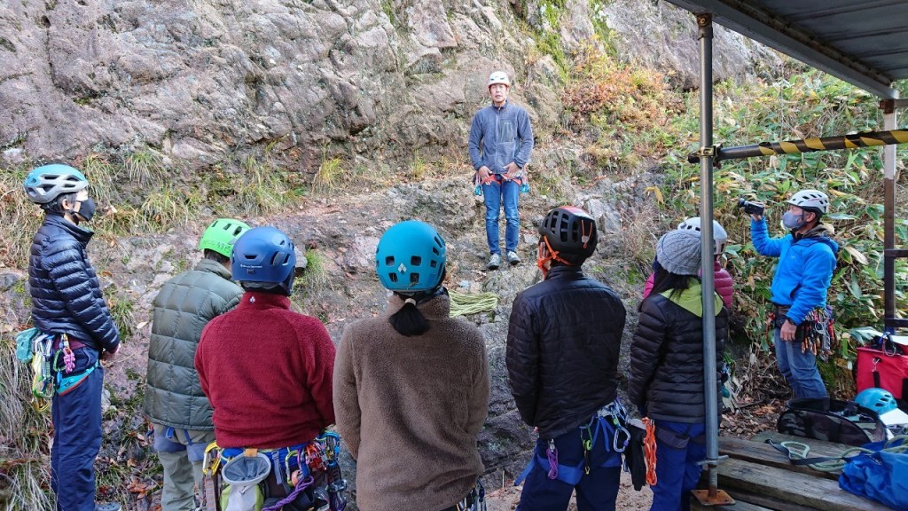 (山宮)ロープワーク講習会は講習に初めて参加するメンバーや基本のロープワークがうろ覚えのメンバーもいたようなので今回は基本をしっかりやりました。「やり方忘れたー」とか言うのは以ての外、基本は正確にこなせるよう各自で習得してください。またアイゼン歩行(特にクライムダウン)や岩登りについても同じく各自しっかりできるよう励んでください。