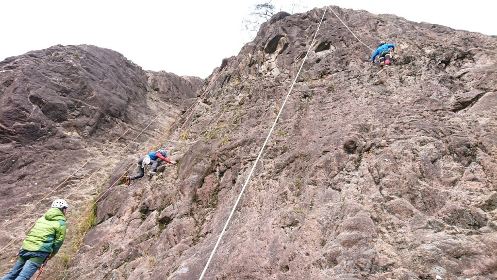 ★目的:ロープワークの基本の確認と実践、アイゼン歩行と岩登りの実践