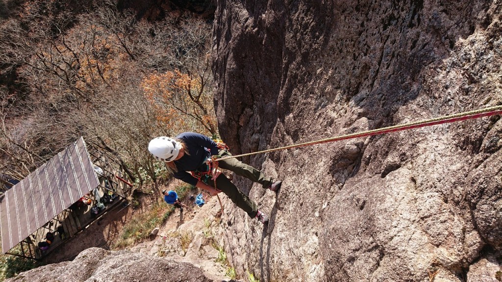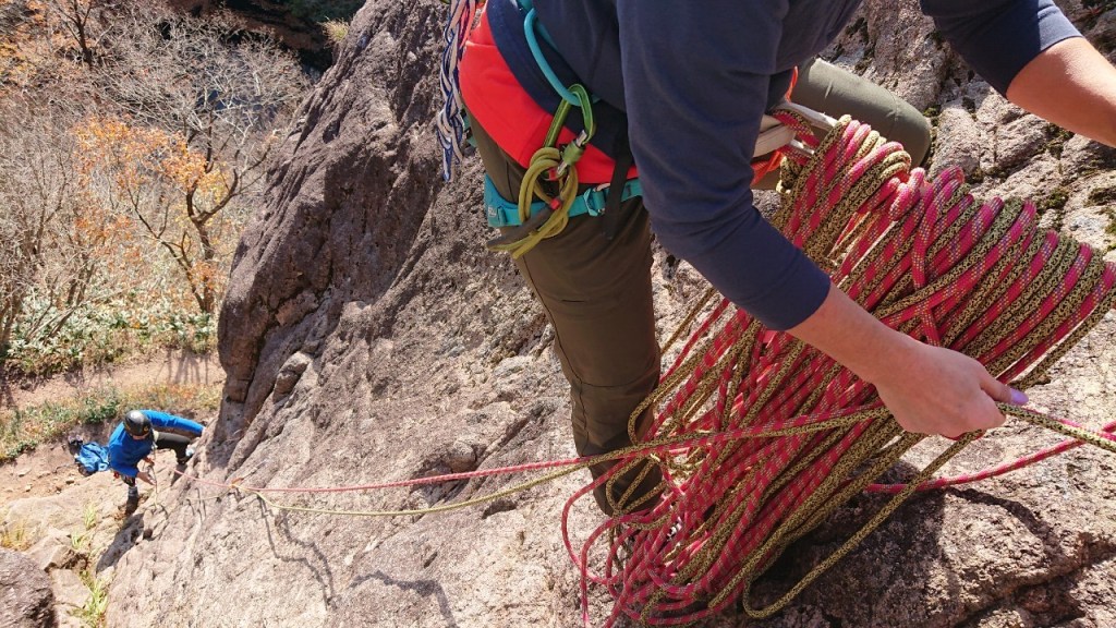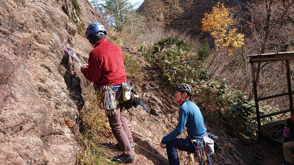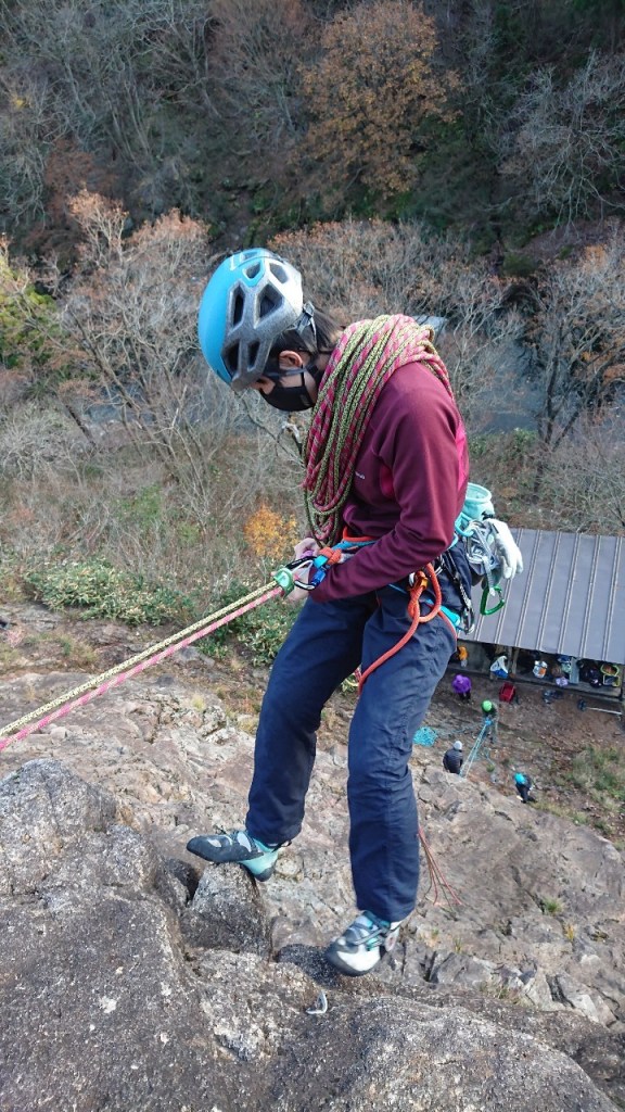 (銅谷)ロープワーク感想。懸垂の時のロープ問題。片方の肩に掛けて出しながら下降。今までで1番良かったかなと思いました。セカンドビレイの時のビレイ器のセットで登る人は上!これを覚えたら実際二子山に行っても素早くセットする事が出来ました。ロープワーク講習はとても勉強になり良かったです!アイゼントレ感想。去年より登りも下りもスムーズに出来た気がしました。懇親会では今年も竹内さんの美声に感激。美味しい芋煮やムカゴご飯…等沢山のお料理美味しかったです。とても楽しかったです。