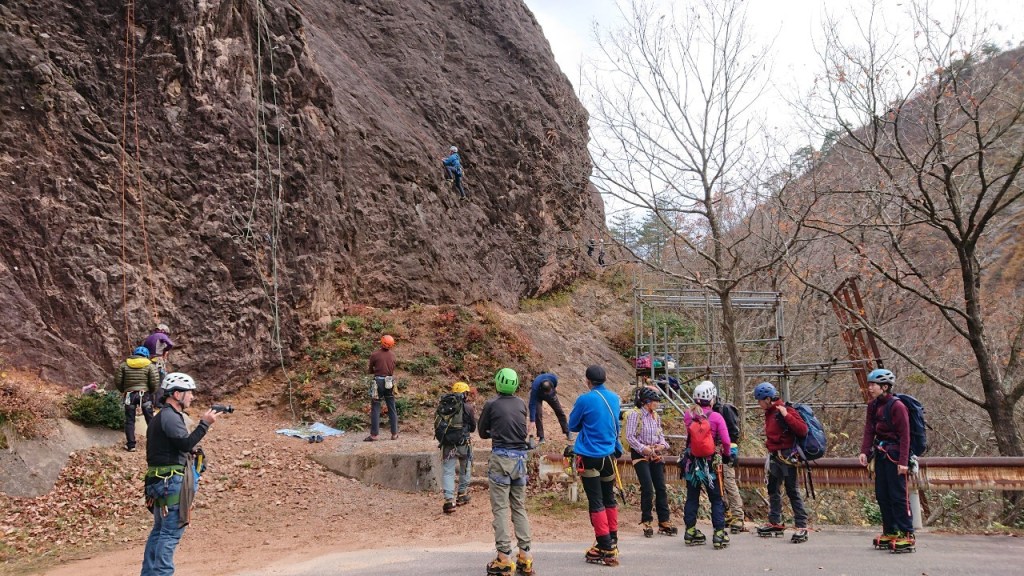 (長谷川)ロープワーク講習は小川山でのクライミング講習会の時とはまた違うやり方を山宮会長からは教えて頂きました。様々なやり方を習得した上で、自分にとって、またその場その場でベストと思えるやり方を安全にかつ迅速にやれるようになることが大切だと感じました。勉強したことを忘れないように反復練習しておきたいです。アイゼントレはアイゼン着けてのクライムダウンが迅速にできるようにアイゼン歩行になれておきたいです。