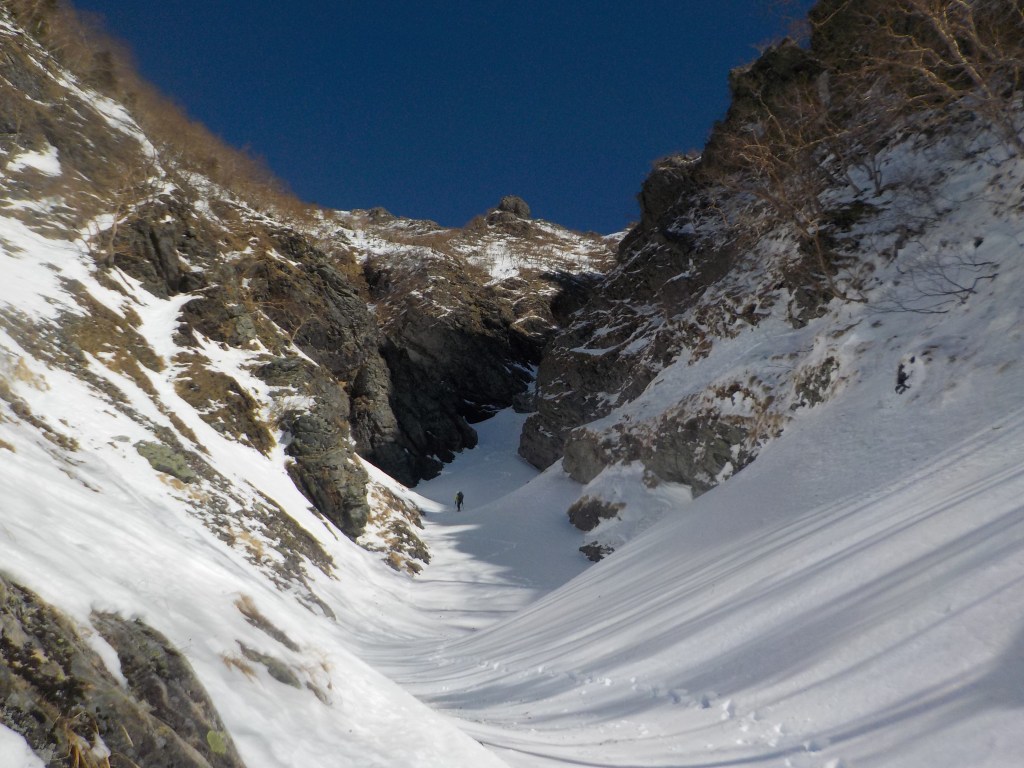 ・トポでは『奥の二俣で左に入り最後は右の尾根を登って大仙丈ヶ岳へ出る。』となってましたが、先行パーティーがラッセルしてくれたトレースは奥の二俣を登り右の尾根に取付かず左の尾根に取付いていたのでそのトレースを後追いしました。