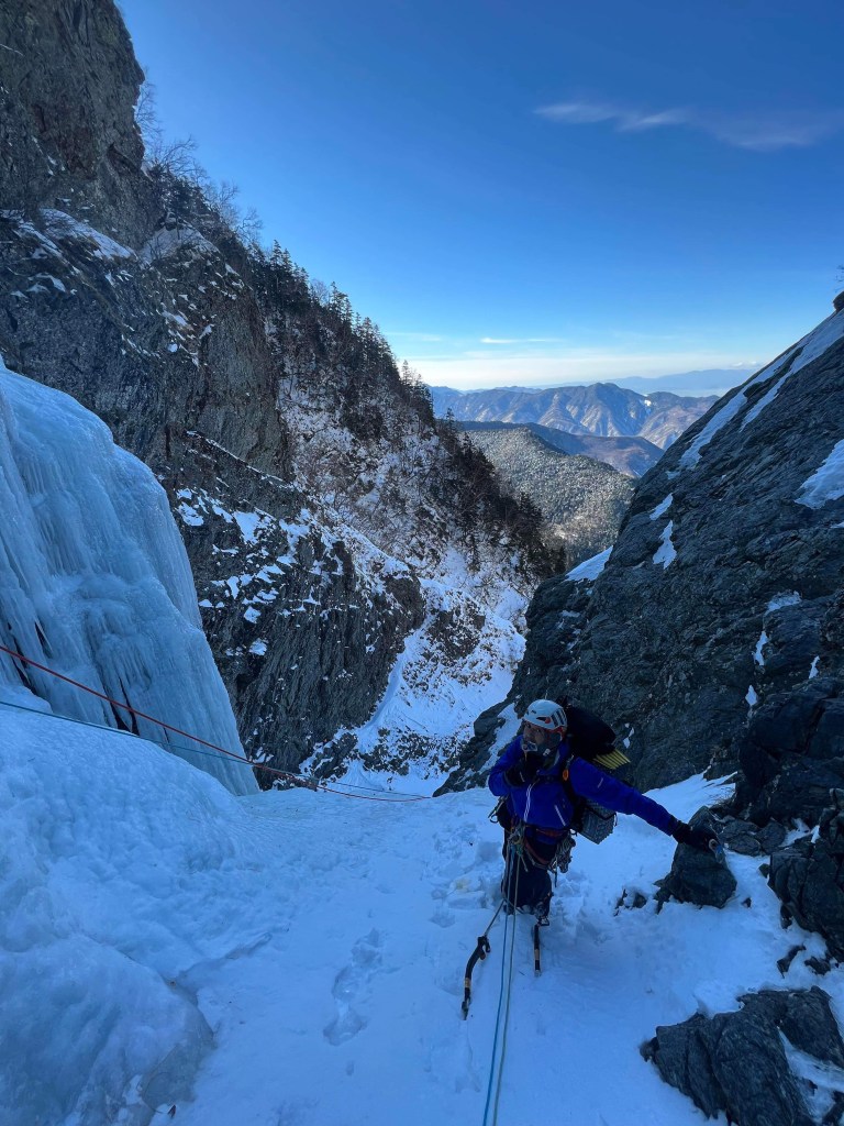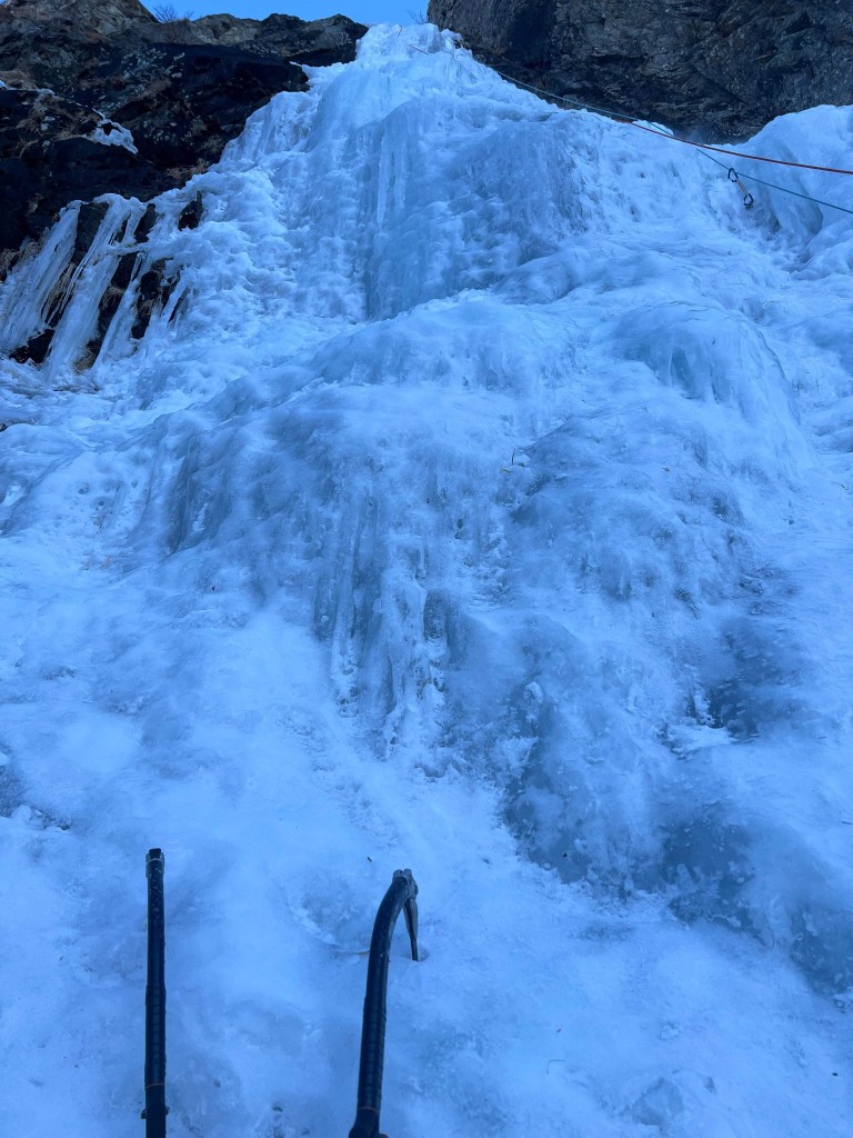 ・全体的に水っぽい氷でした。レーザースピードライトは使いづらかったです。(氷結が甘いというか水っぽい氷が多い感じの日本のアルパインルートにはレーザースピードの方が使い勝手が良いと改めて感じました。次回からアイススクリューを購入する際は軽さ重視ではなくて使い勝手重視にしようと思います。)