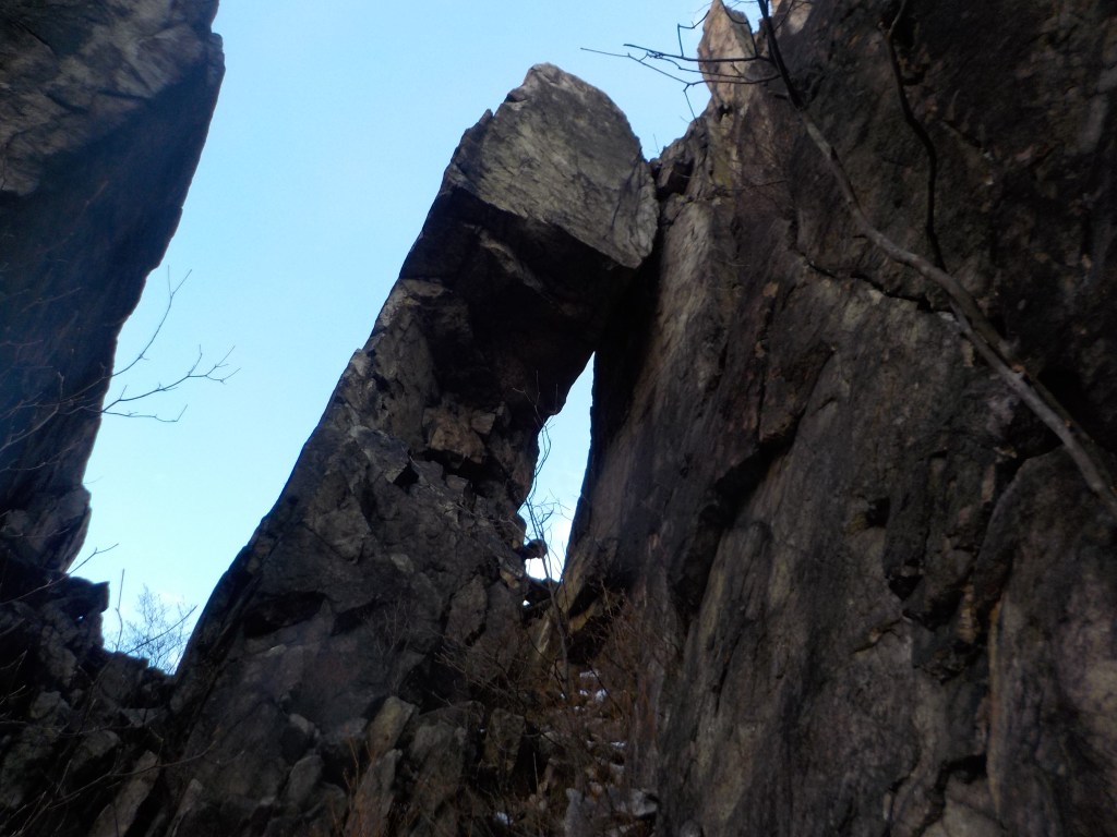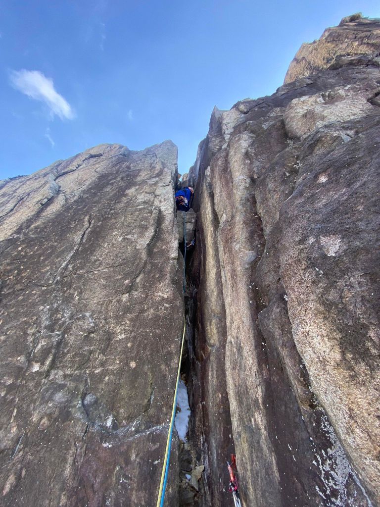 ・2P目(Sさんリード):核心のチョックストーンを越えたところにある右の終了点まで。体をチムニー内に挟めて登りました。フォローだったので楽しく登れました。
