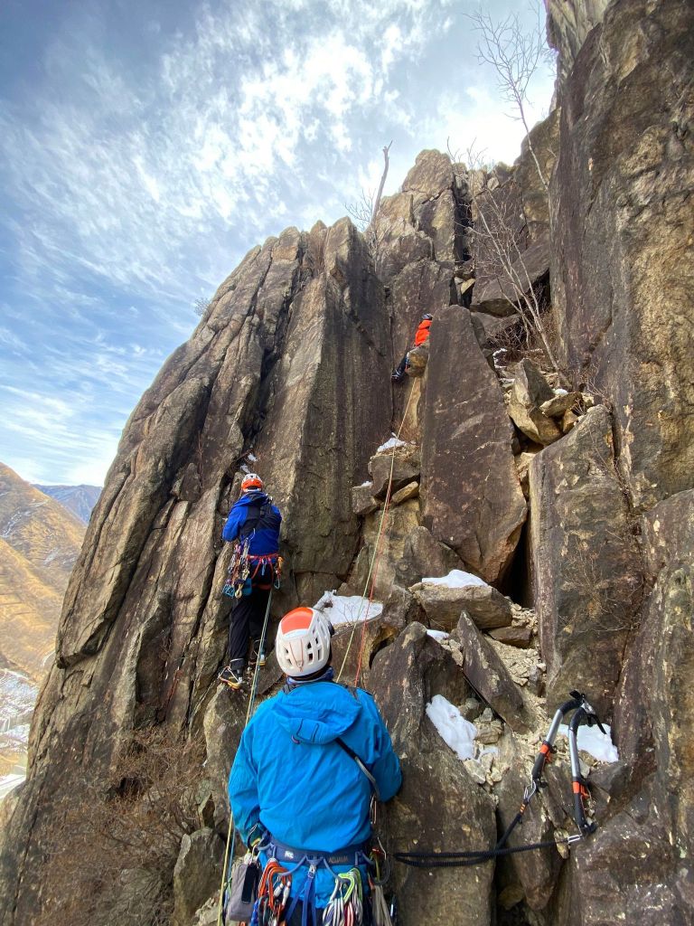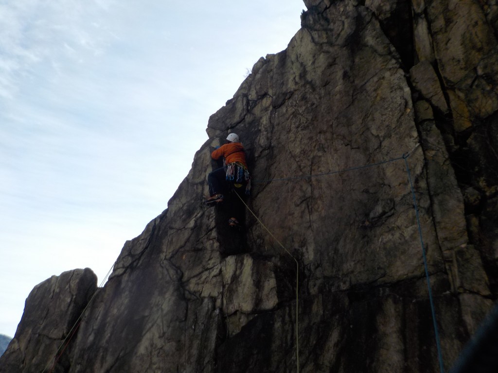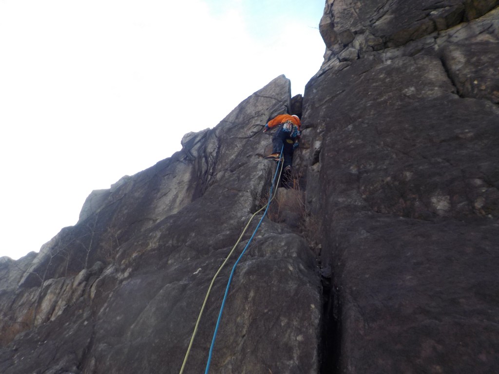 ・4P目(山宮リード):右のルンゼがチョックストーンルートだったようですが面白いと言われた左のカンテ(2段チムニールートの3P目)を登りました。楽しく登れました。
