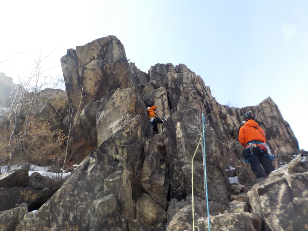 ・1P目(山宮リード):易しい階段状を登りチョックストーンの少し下の終了点まで。特に問題なく登れました。