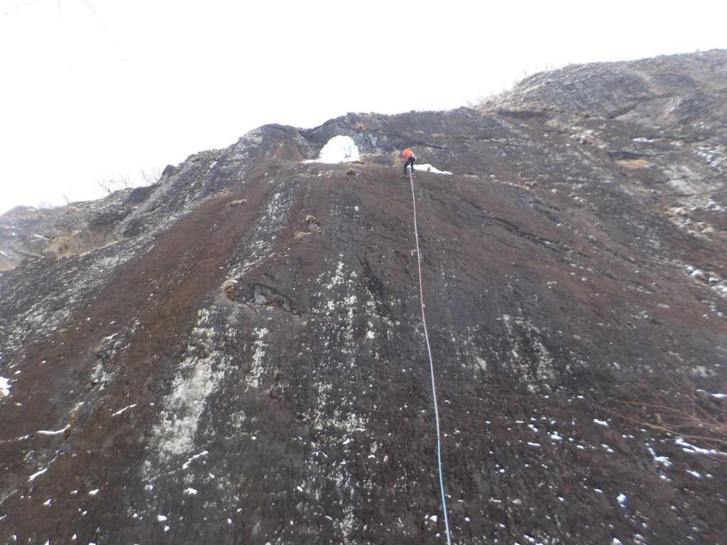 ★感想:Oさんから「攀船記やりませんか?」と連絡があった。さらっと難しいところをやりましょうとOさんは言ってくる(笑)そして「いいですよ」と簡単に私が即答する(笑)という事で今回は荒船山艫岩の攀船記を登ってきました。自分たちにとってオーバーグレードのルートだったので最初から敗退覚悟で登りましたが来るべく山行のトレーニングとして攀船記を3Pまで登れたのは良かったです。またとても良い経験ができました。(3P目の核心は種明かしできたので次回は問題なく登れると思います。)この日の攀船記は先行パーティーがいて、その先行パーティーは知っている人たち(神奈川の山岳会のYGさんとYZさん)でした。先行パーティーのおかげで2P目、3P目と迷わず行けました。ありがとうございました。先行パーティーが4P目途中まで登って氷の状態を間近で見て撤退の判断をしたので自分たちも4P目は登らずに3P目終了点から懸垂下降で下りました。(強い人=4年前に登っている人がFBで4P目の氷の写真を見て「4年前より良い感じに育ってますなー」だそうです・・・)Oさん、お疲れさまでした。次回は上まで登りきりましょう!!