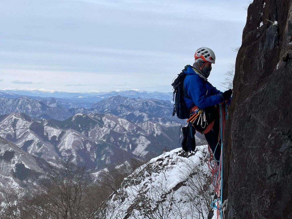 ・岩を越えるのに岩に取付きますが、初めの一歩目はバランスをとるのが難しく悪かったです。(雪の付いた岩にはアックスが上手く決まらず思い切って荷重できずバランスが悪かったのですが、行くしかないので慎重に登りましたがアックス2本のうち1本が外れて落ちそうになりました。上手くリカバリーして体勢を立て直し今度はバランスよく乗越せました。)