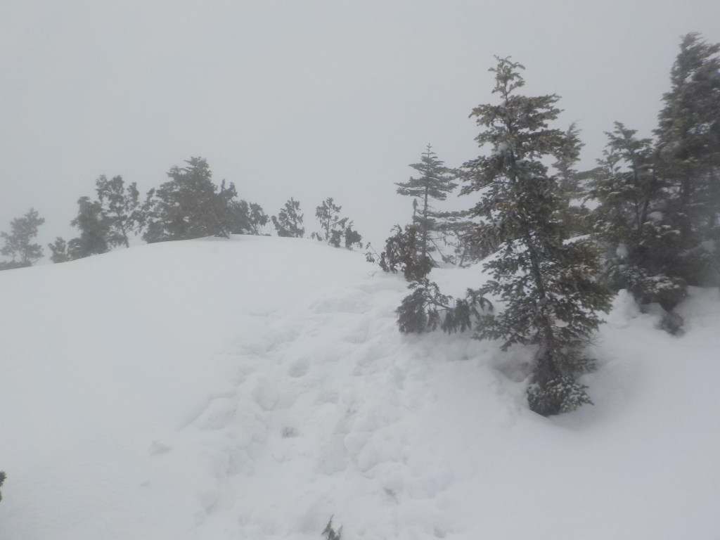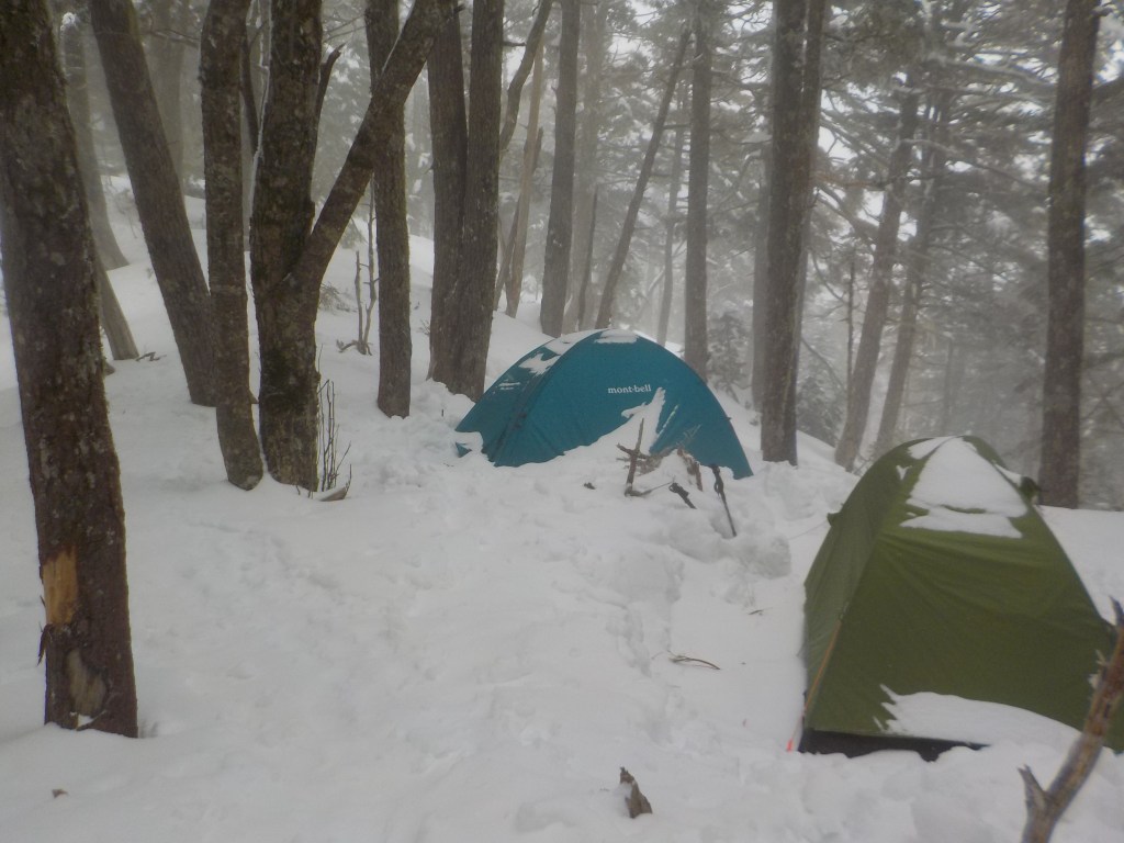 ・樹林帯の中の泥混じりの雪は下山時には滑りやすくなってました。