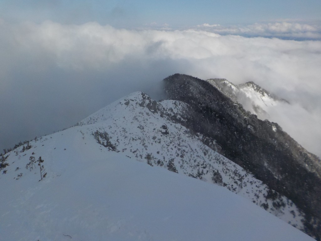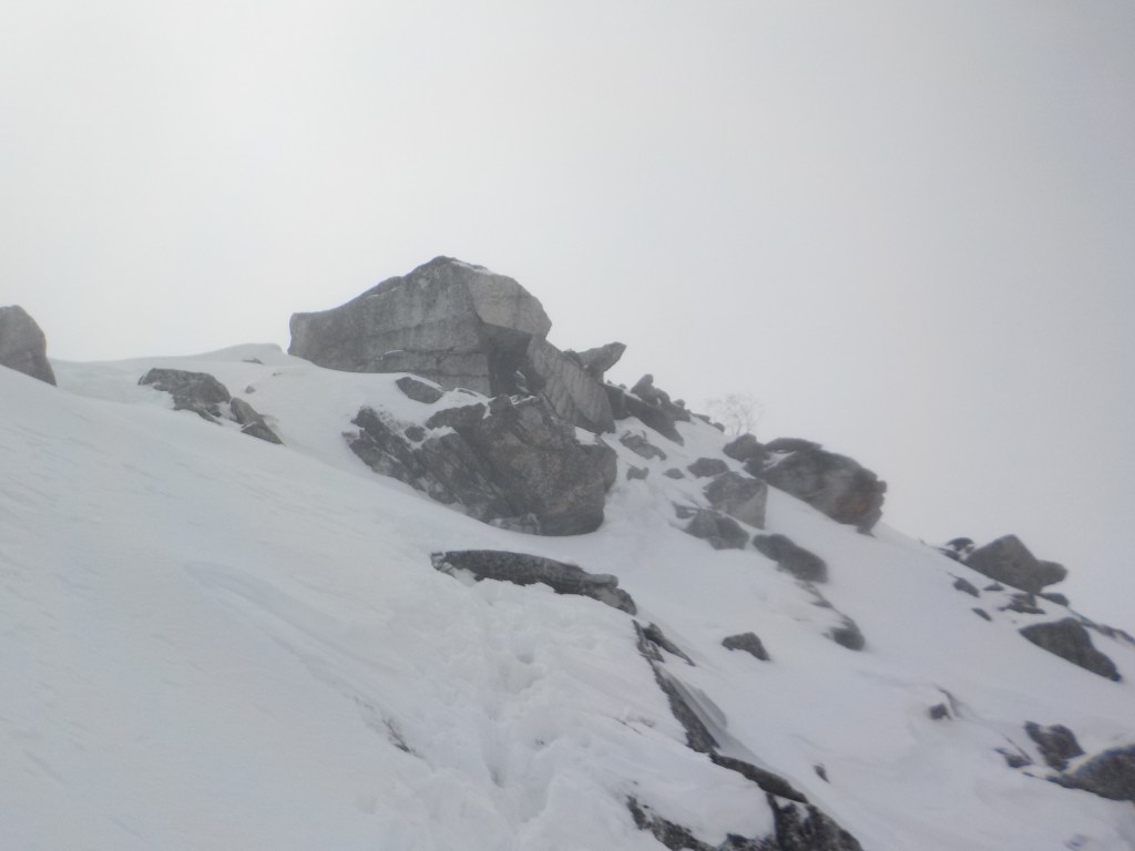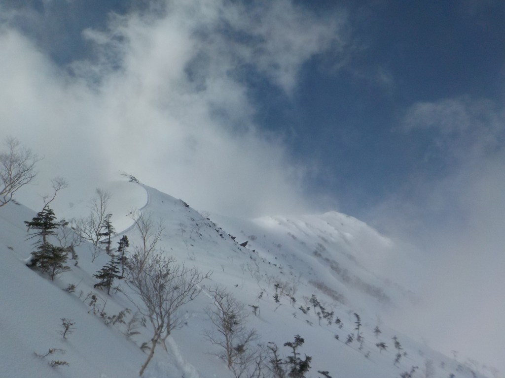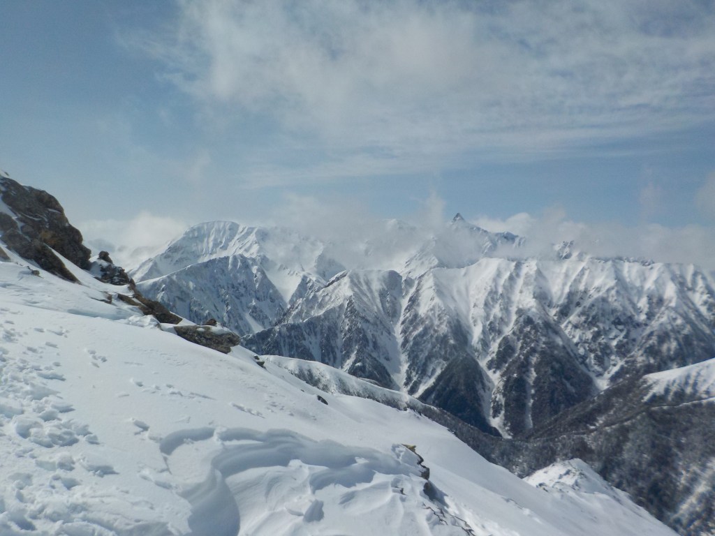 ・樹林帯の中で標高が低いところは泥混じりの雪でした。泥が無くなると締まった雪になり歩きやすかったです。森林限界を超えると雪は緩みはじめ前常念から先は緩いところが多かった感じですが気にせず歩けました。(アイゼンは前常念から付けました。下山は樹林帯の中の適当なところで外しました。ピッケルは携行しましたが不使用、ストック2本で問題なかったです。ワカンも携行しましたが不使用。)