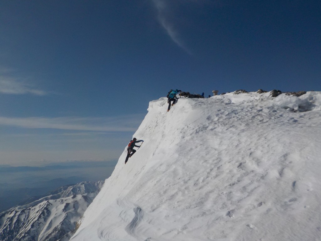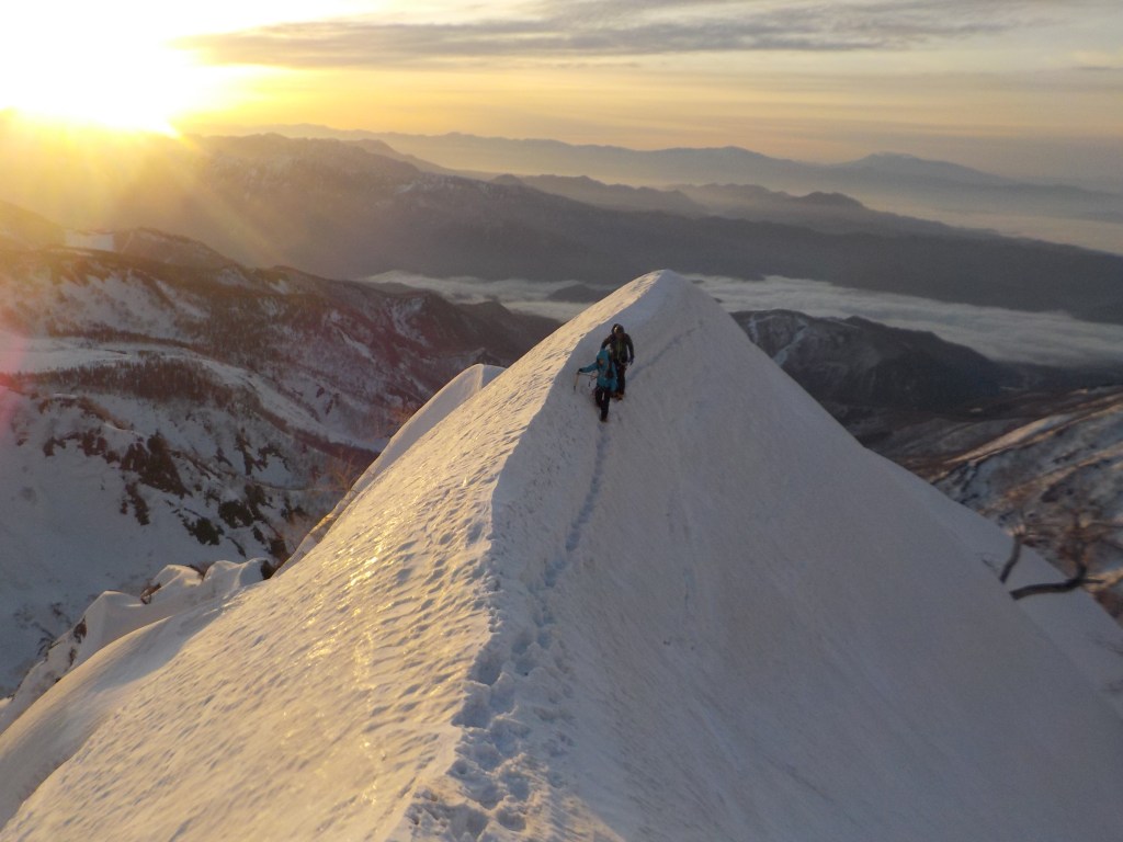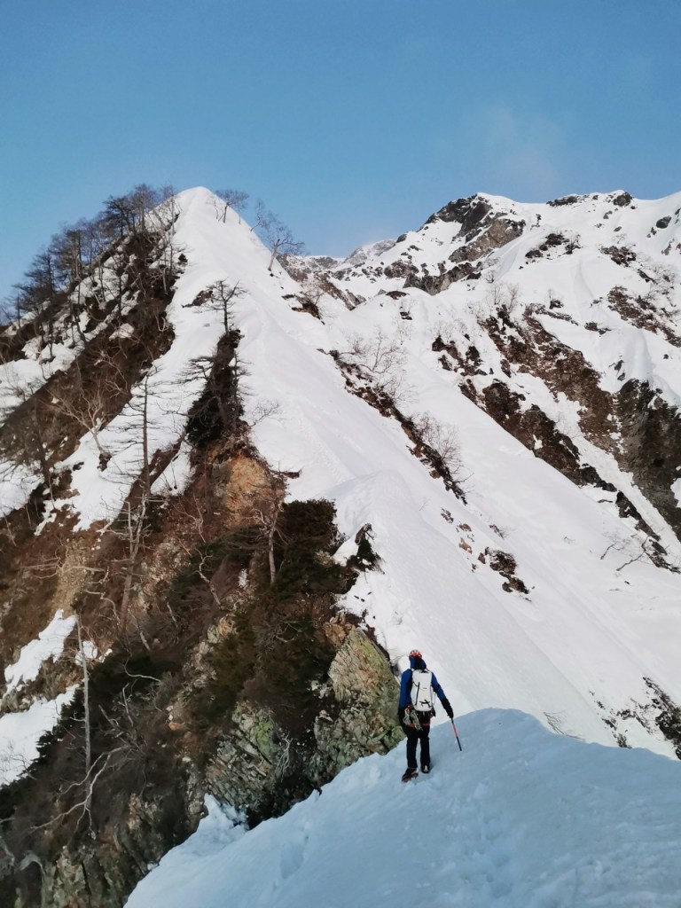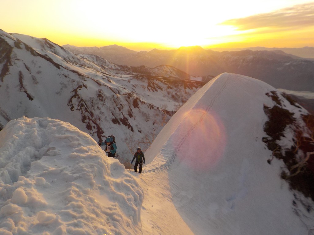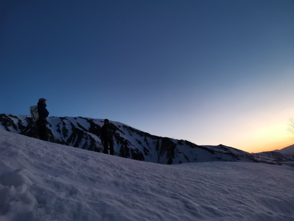 (高橋)明け方の冷え込みのおかげで雪の状態が良かった事、先行者のトレースがしっかりついていた事も重なり良い状態で登攀することが出来ました。山宮さん、工藤さんありがとうございました。課題として体力向上と、会山行等で学んだ技術を活かして、レベルの高い山への個人山行にチャレンジしていきます。
