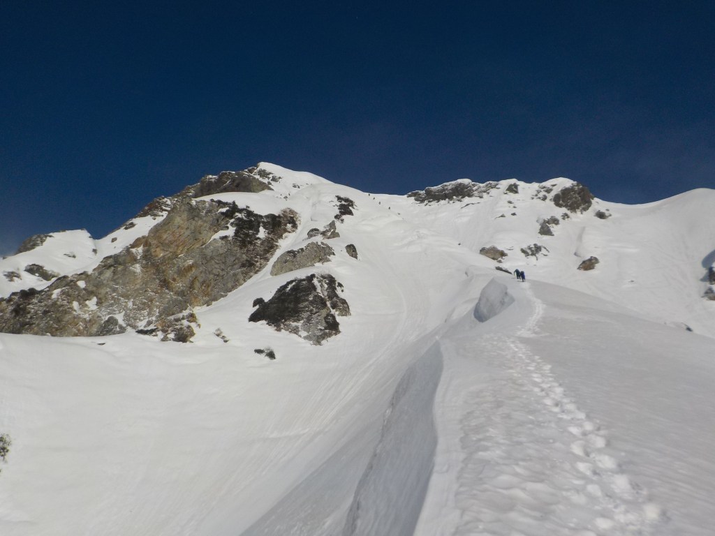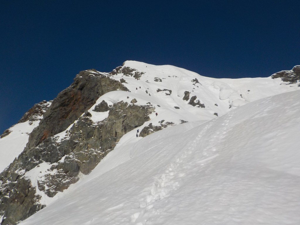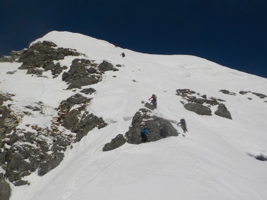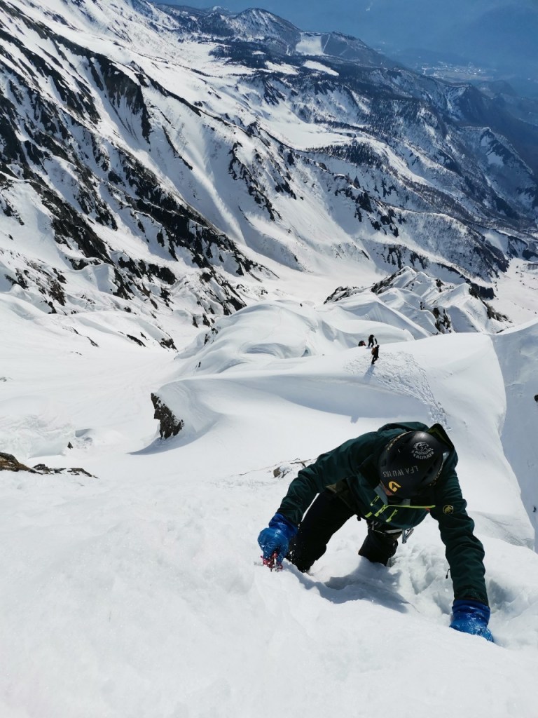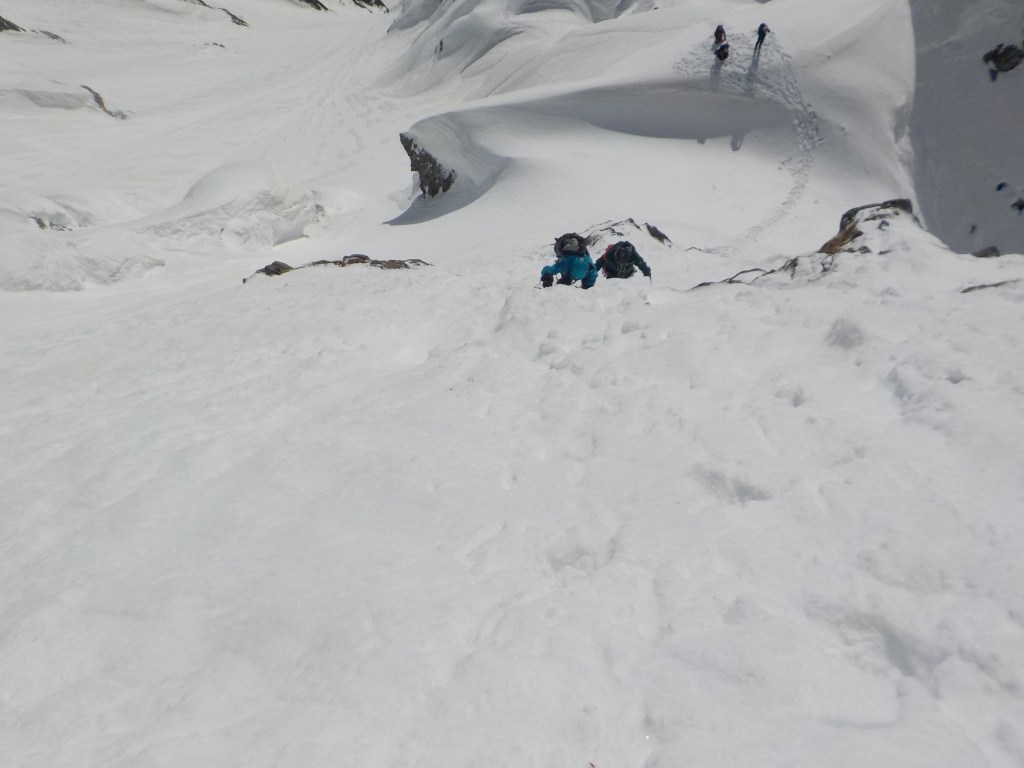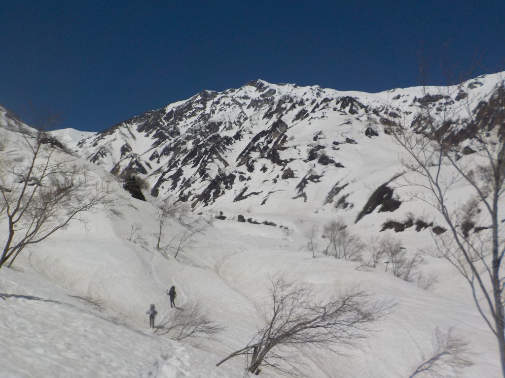 (山宮)アタックした4/17は快晴で良かったです。白馬尻~主稜~山頂まで雪の状態は良く踏み抜きは無し。トレースがしっかりついていてラッセルも無し。雪が豊富にあって藪ぽいところは無し。で、楽に登らせてもらいました。大雪渓の雪は今回下った時間帯では程よく緩んでいて歩きやすかったです。初日の猿倉荘~白馬尻までは雪の状態が良く踏み抜きも無く歩きやすかったです。工藤さんの提案で参加した山行でしたが良いトレーニングになりました。