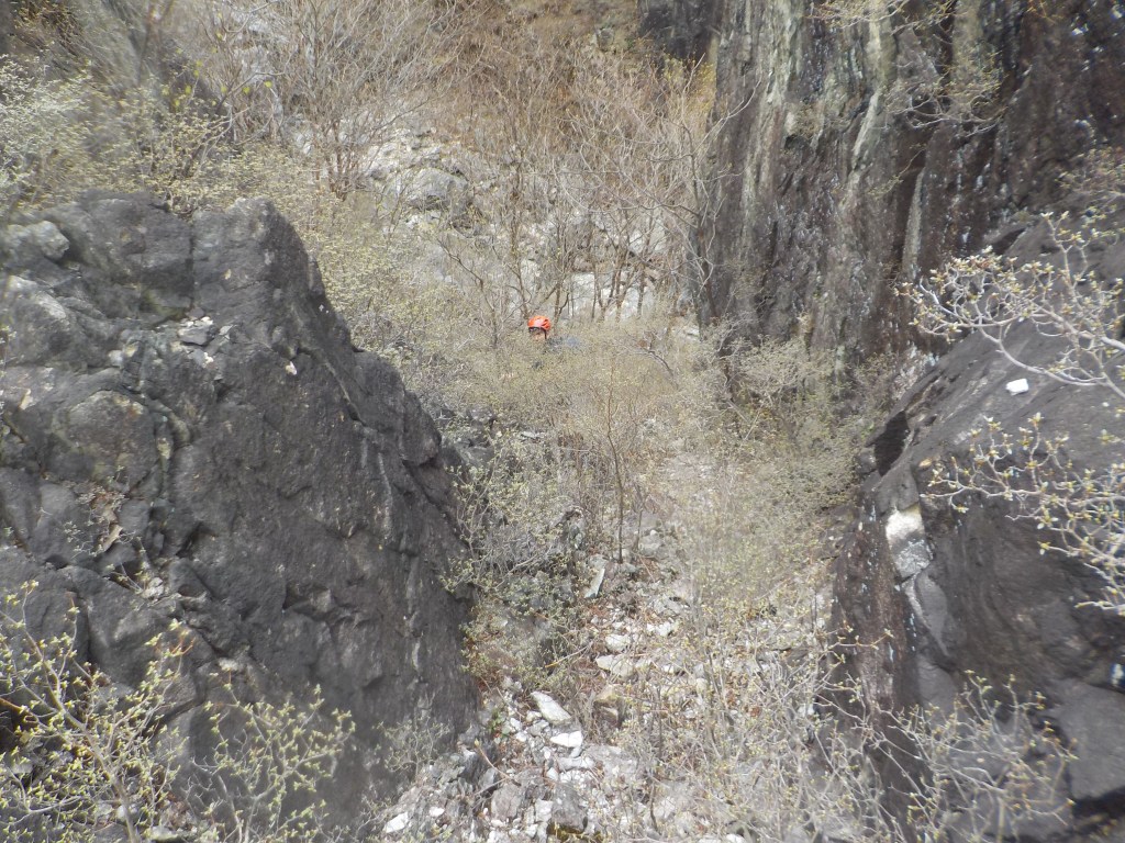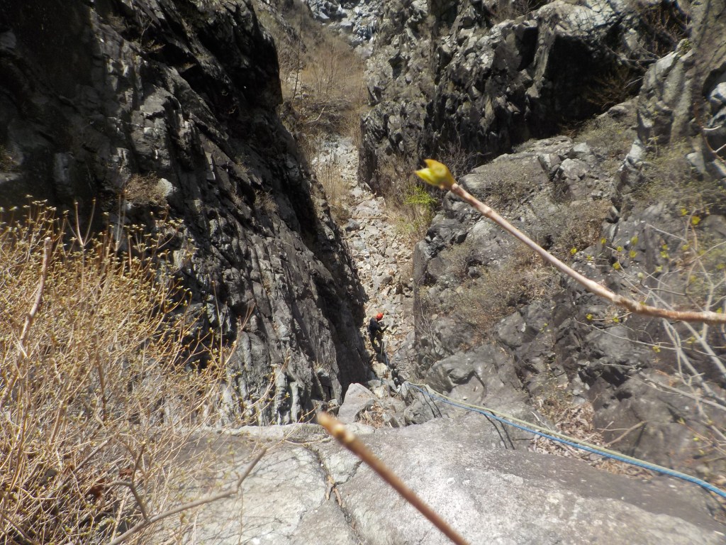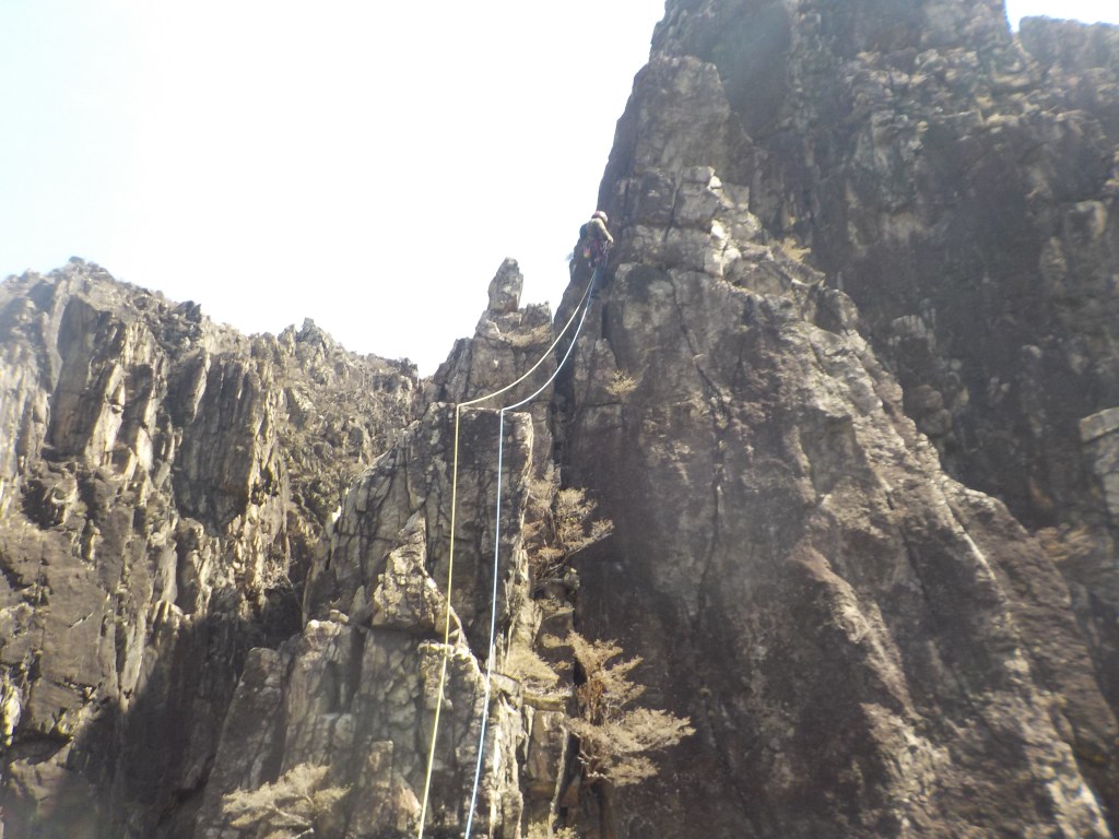・懸垂下降支点は灌木(4箇所ともスリングとカラビナを残置しました。)