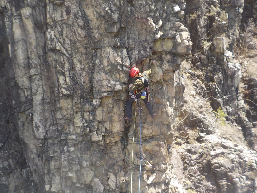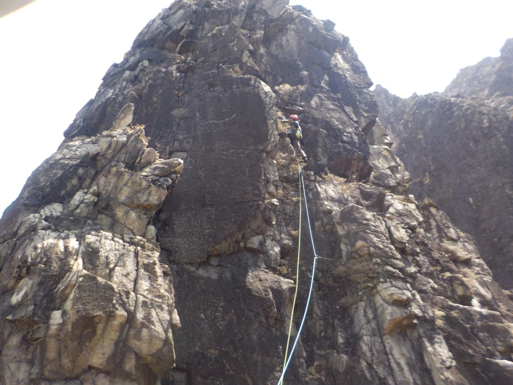 ・基本、残置の中間支点は無いのでカムやナッツ、灌木等で中間支点を取っていきます。