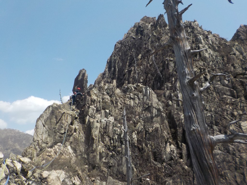 ・リードのSさんは出だしの短いフェースのリッジを正面突破。私は簡単な右の方から回り込んで登りました。