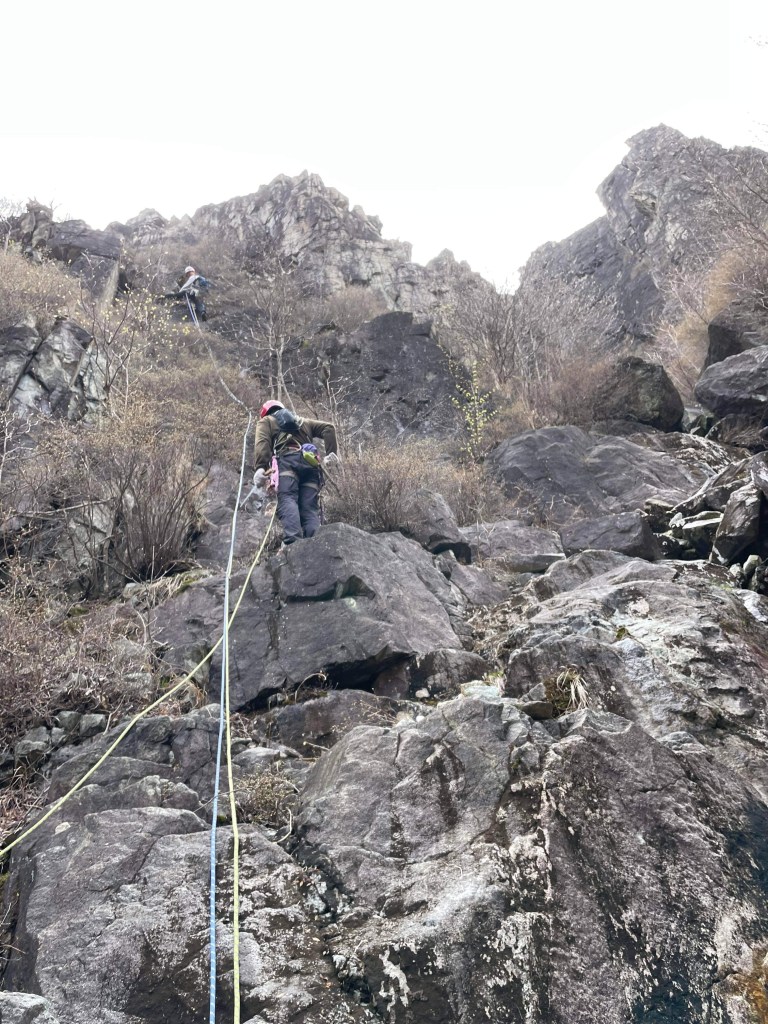 ・ウメコバ沢F1とF2は左岸から巻きました。フィックスロープを使ってゴボウで登りました。