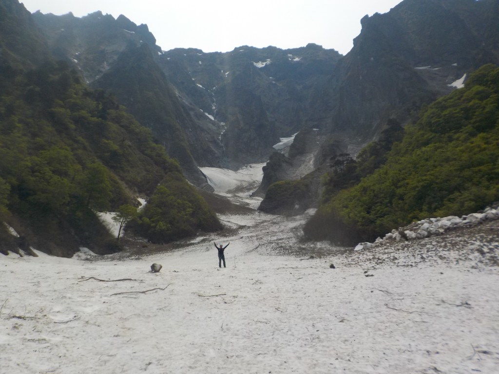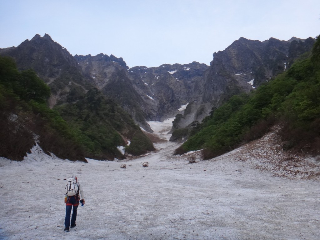 ・一ノ倉沢出合からテールリッジ基部まで雪渓通しで歩けます。